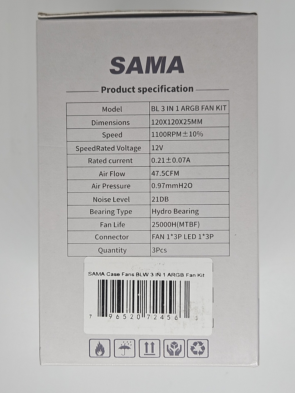 SAMA BLW 3 in 1 ARGB PC Case Fans w/hub 120mm Molex High Performance Quiet White