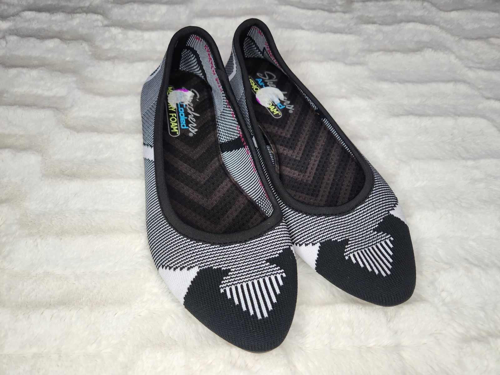 как выглядит Skechers Cleo-Sherlock-Engineered Knit Flat Shoes Bkack White - Womens 8.5 NWOB фото
