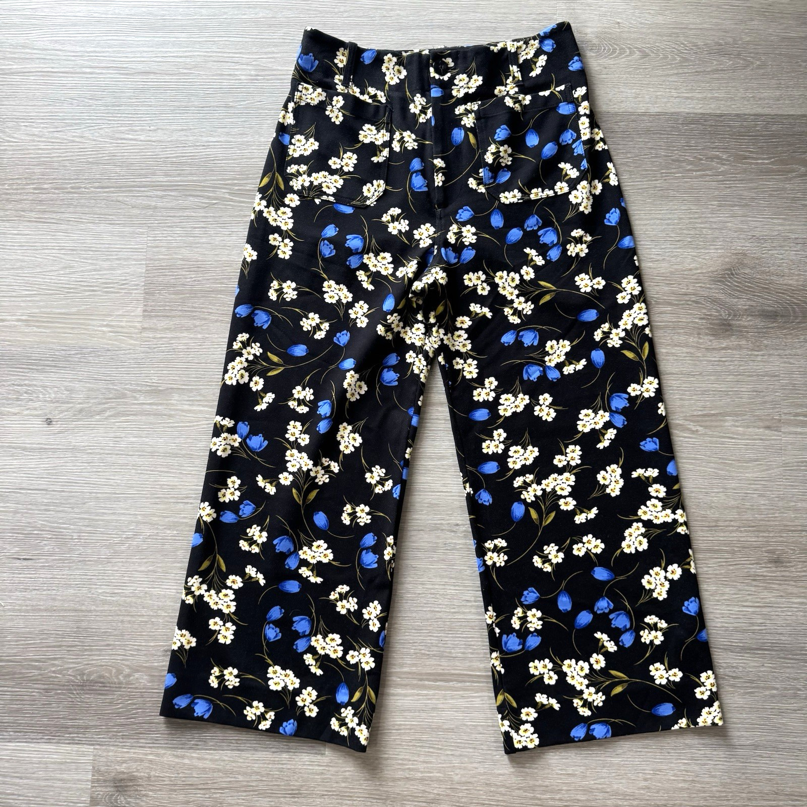 как выглядит Maeve by Anthropologie Colette Wide Leg Crop Black Floral Stretch Pants Wm 31 фото