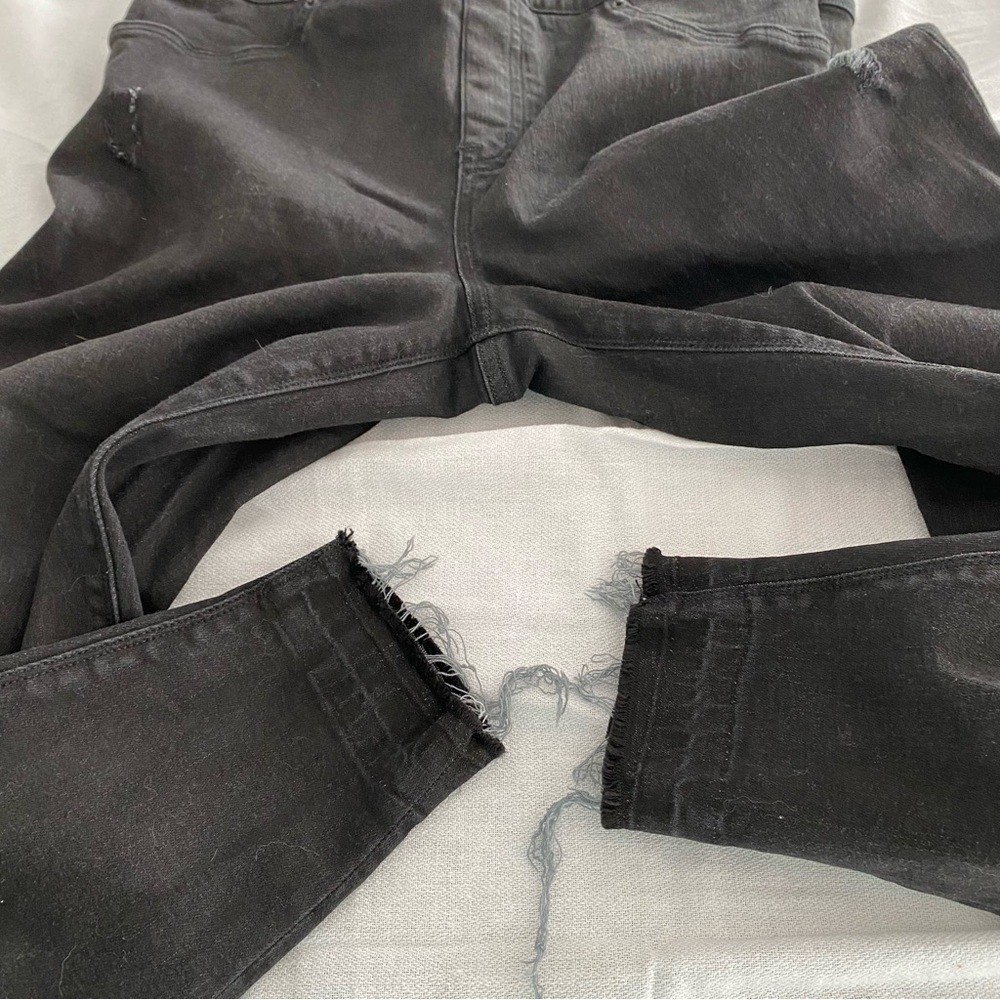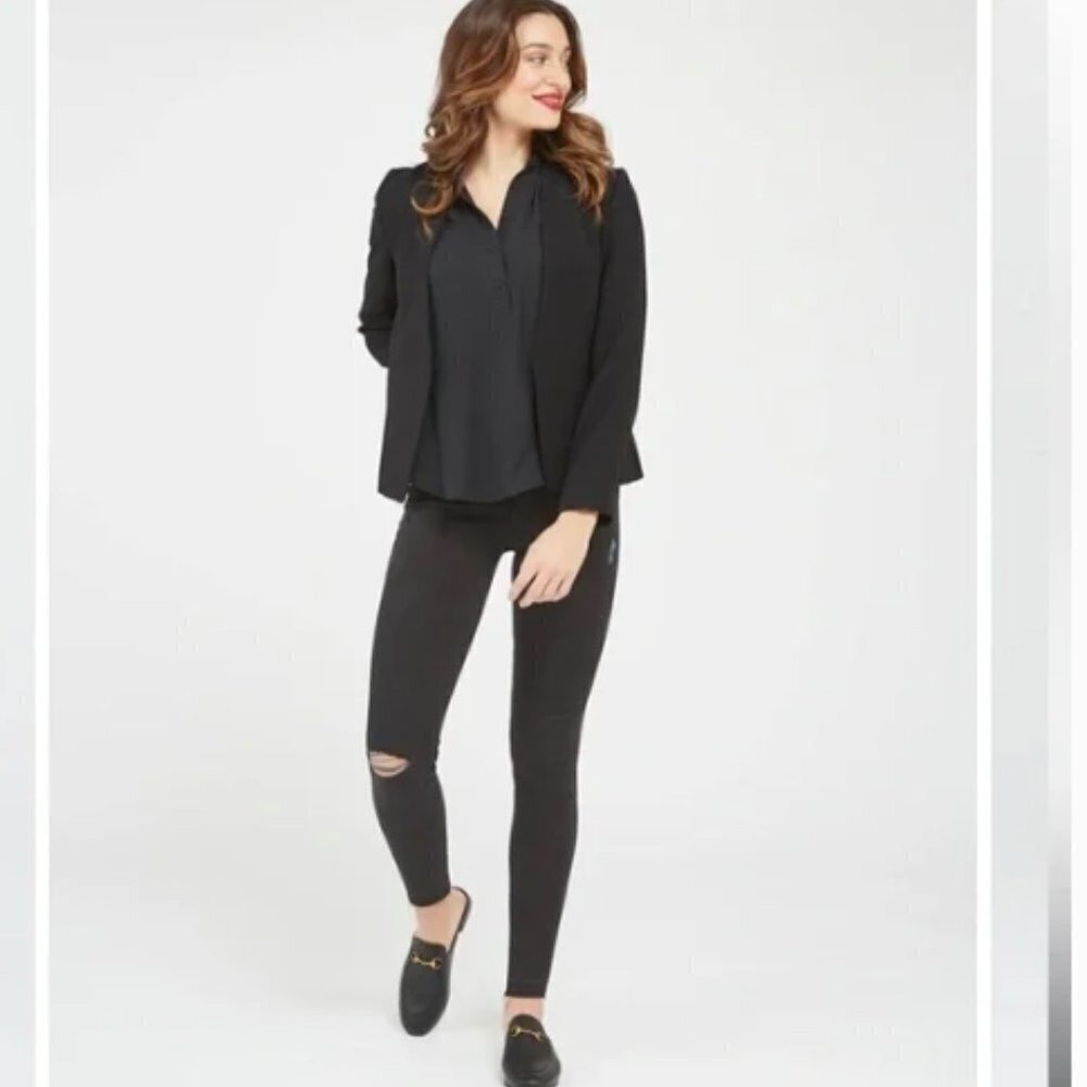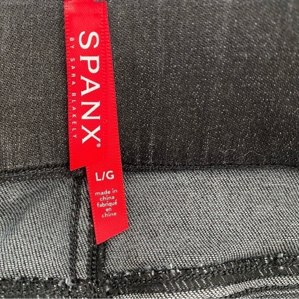 как выглядит SPANX Ankle Skinny Pull On Jeans Vintage Distressed Black size Large фото