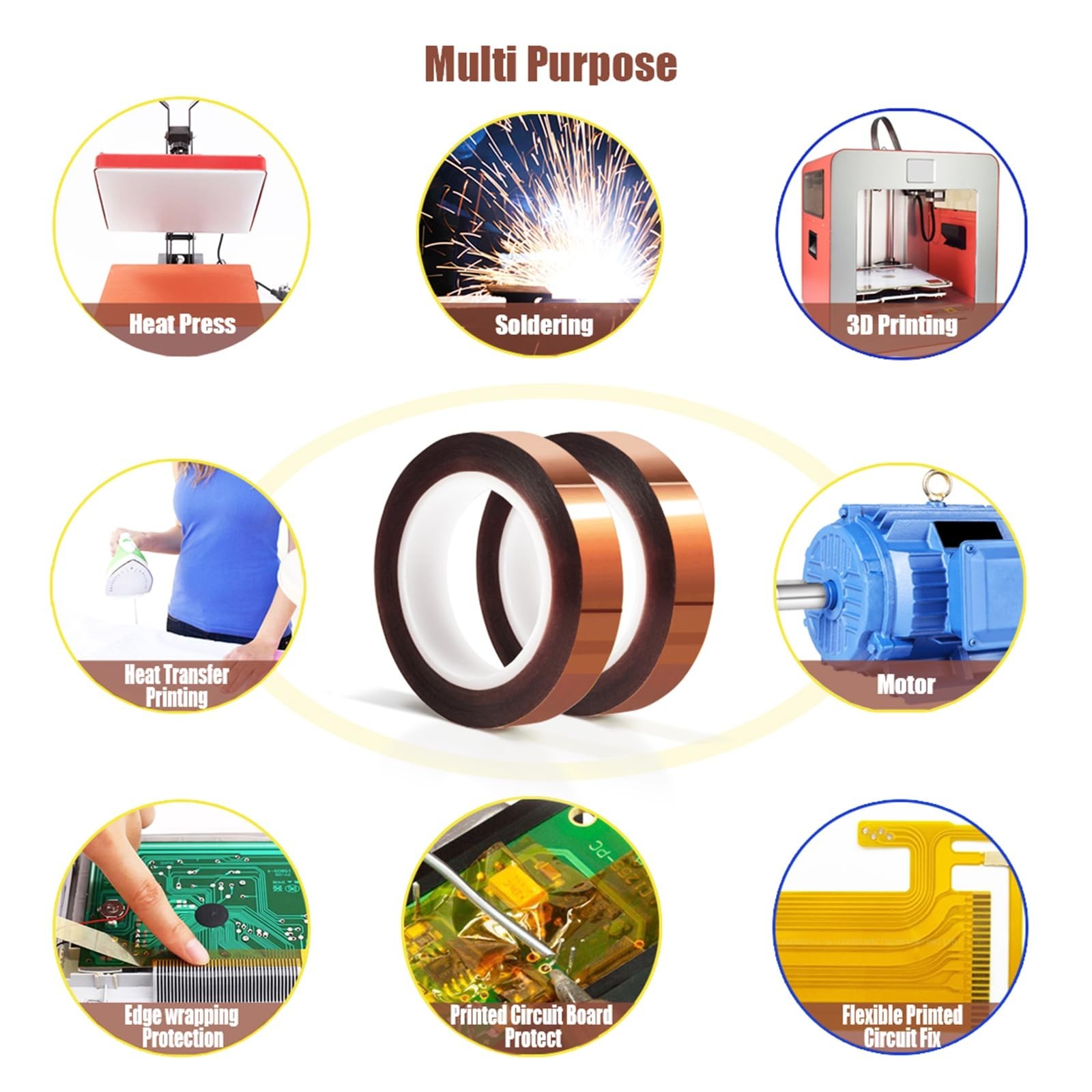 как выглядит 2 Rolls 10mm x16m 52FT Heat Tape High Temperature Heat Resistant Tape Heat T... фото