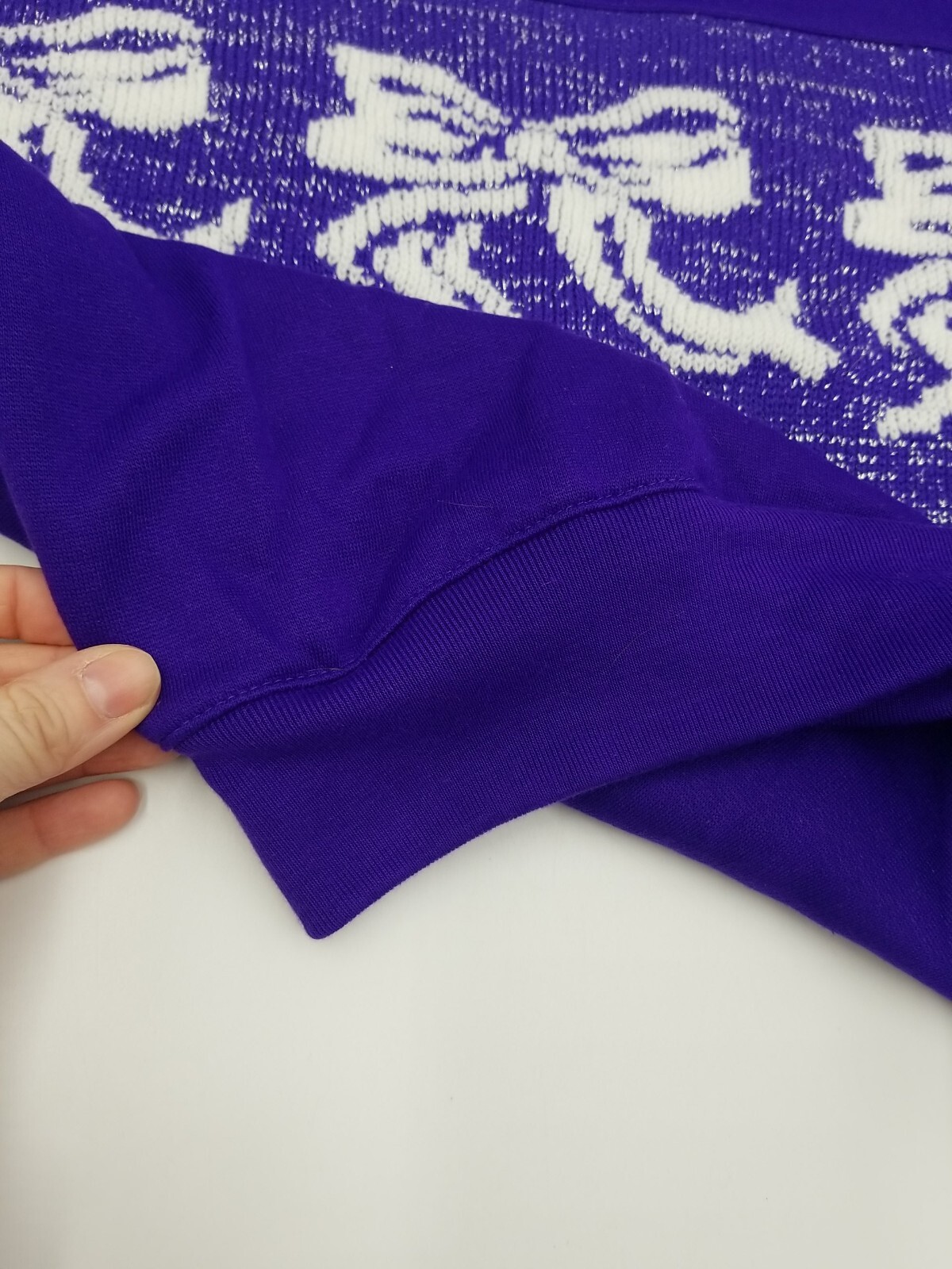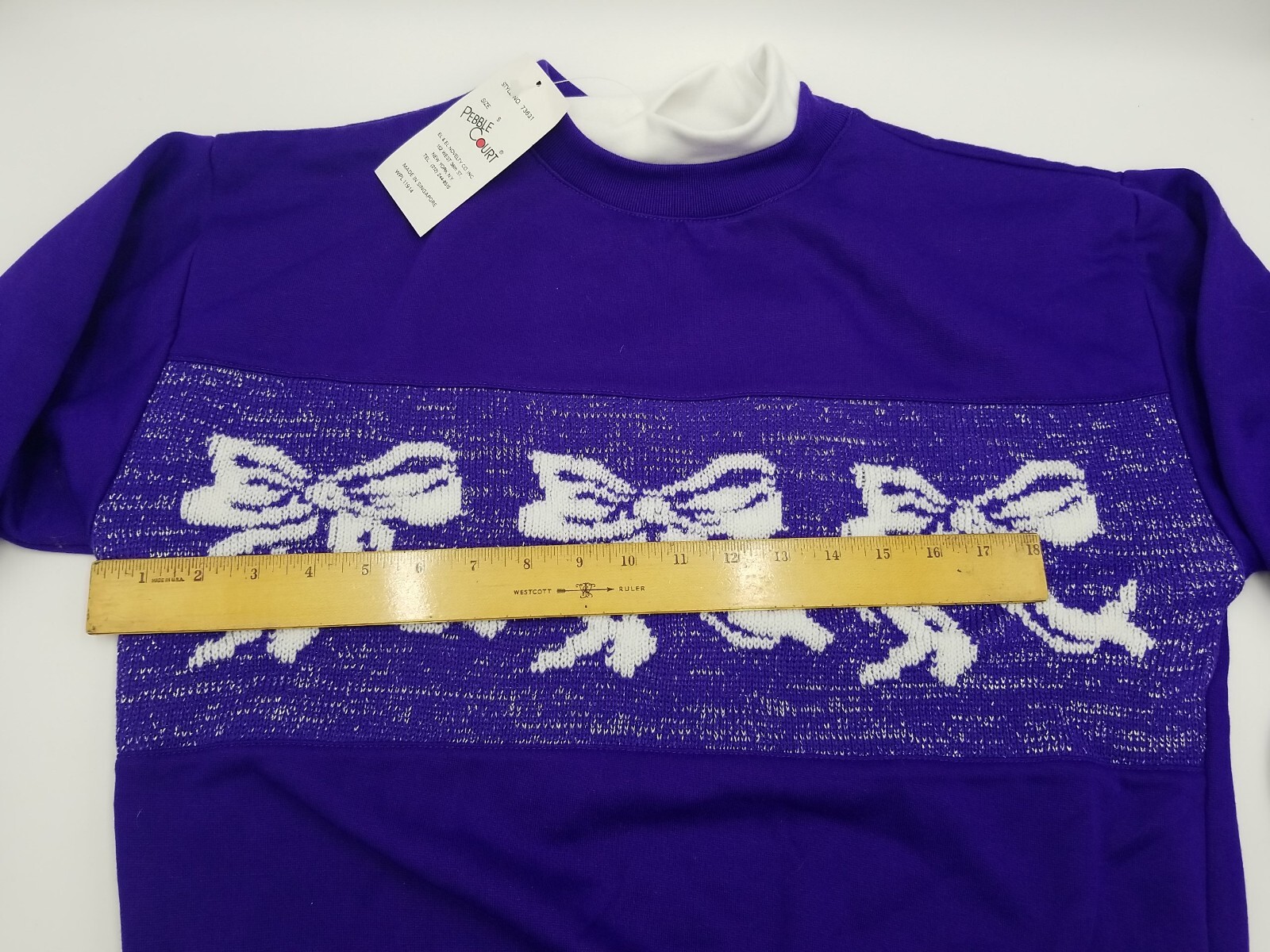 как выглядит Vintage Pebble Court Sweater New Old Stock Purple/Silver White Bows Size Small фото