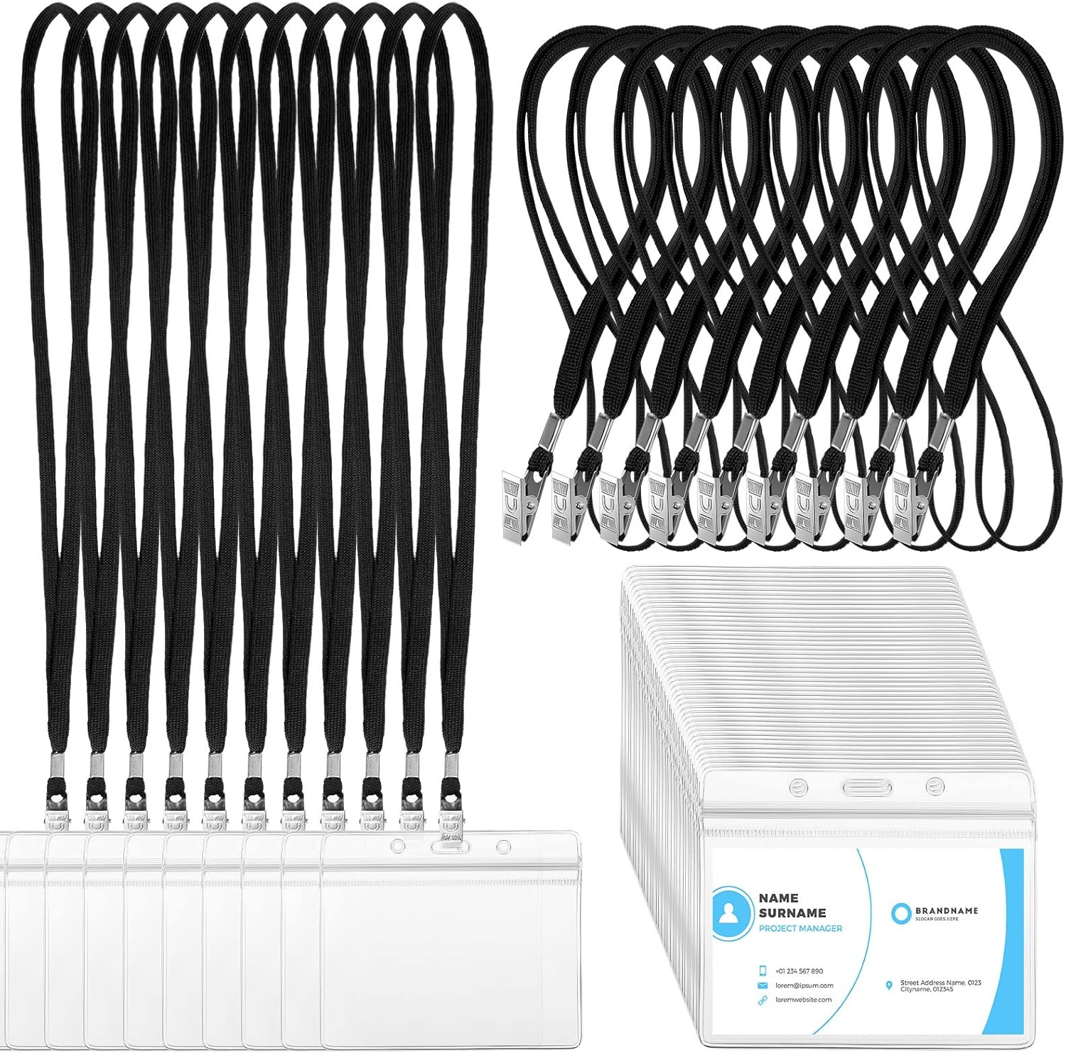 как выглядит Marspark 100 Sets Clear Name Tags with Lanyard, Lanyards for ID Badges Reusable фото