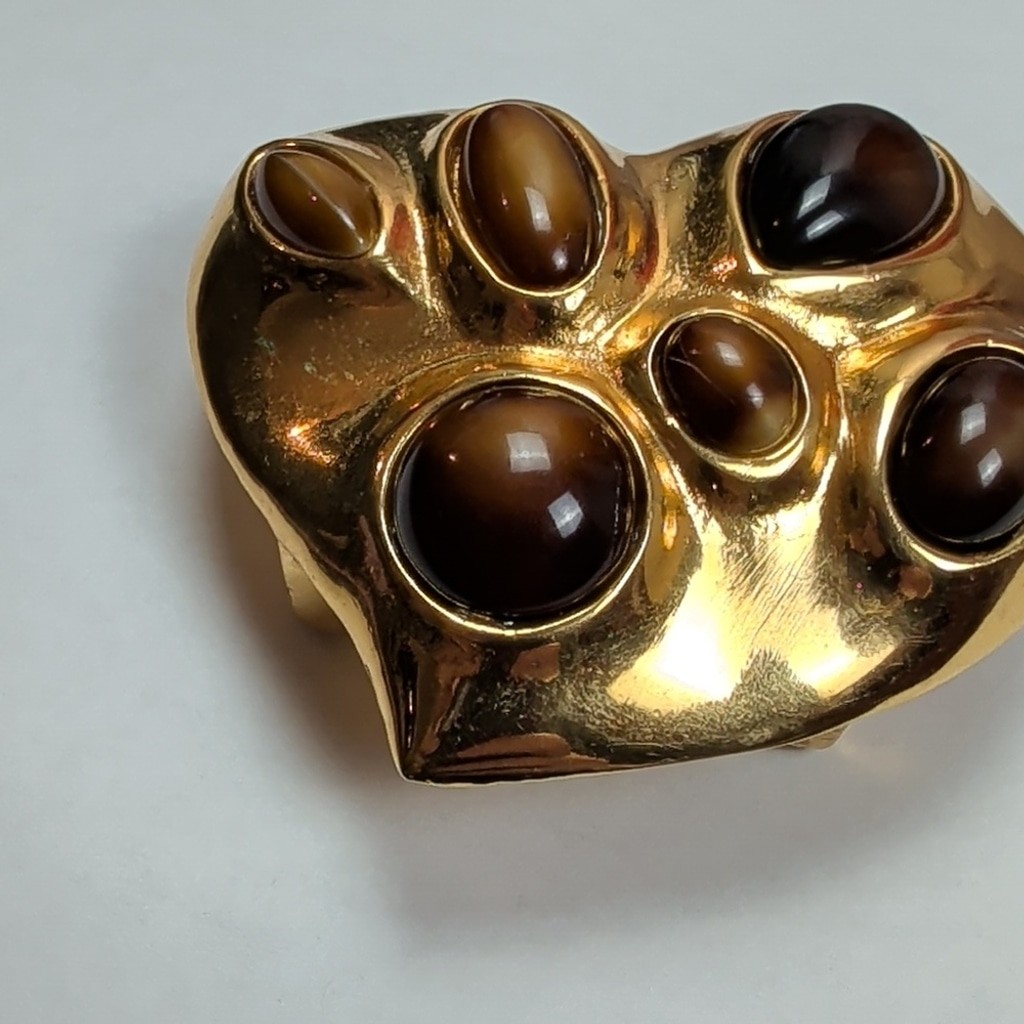 как выглядит Gold Heart Belt Buckle with Brown Accents Vintage фото