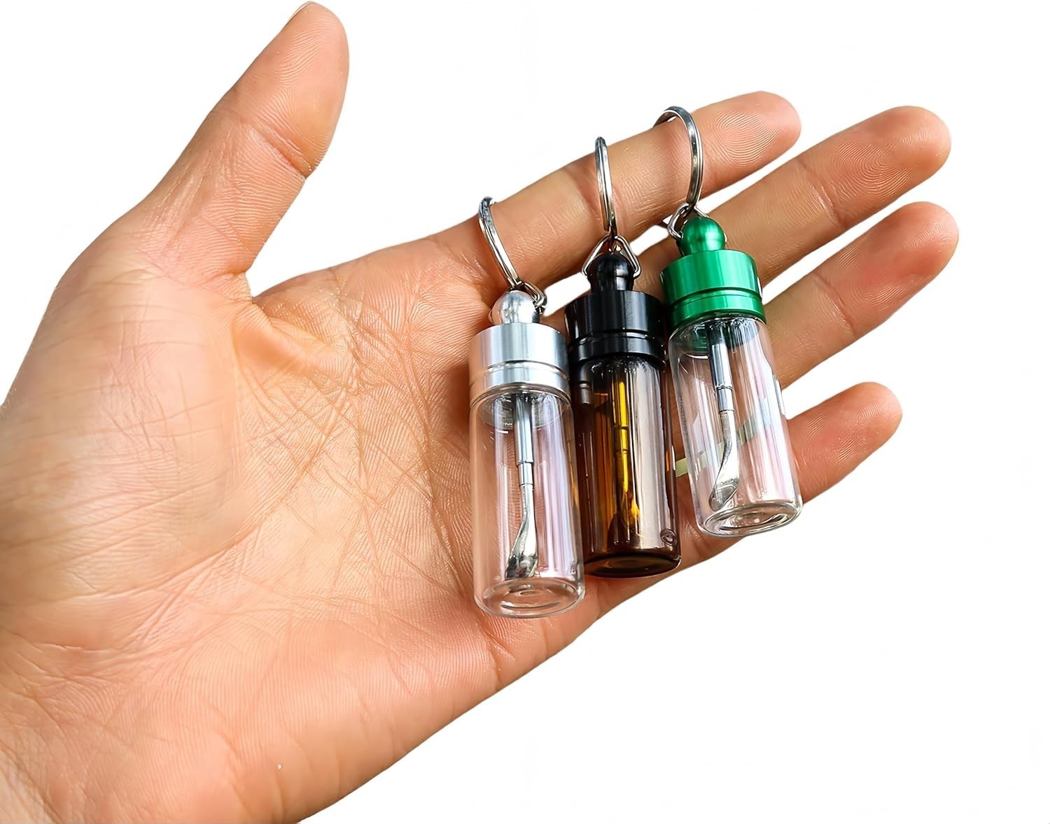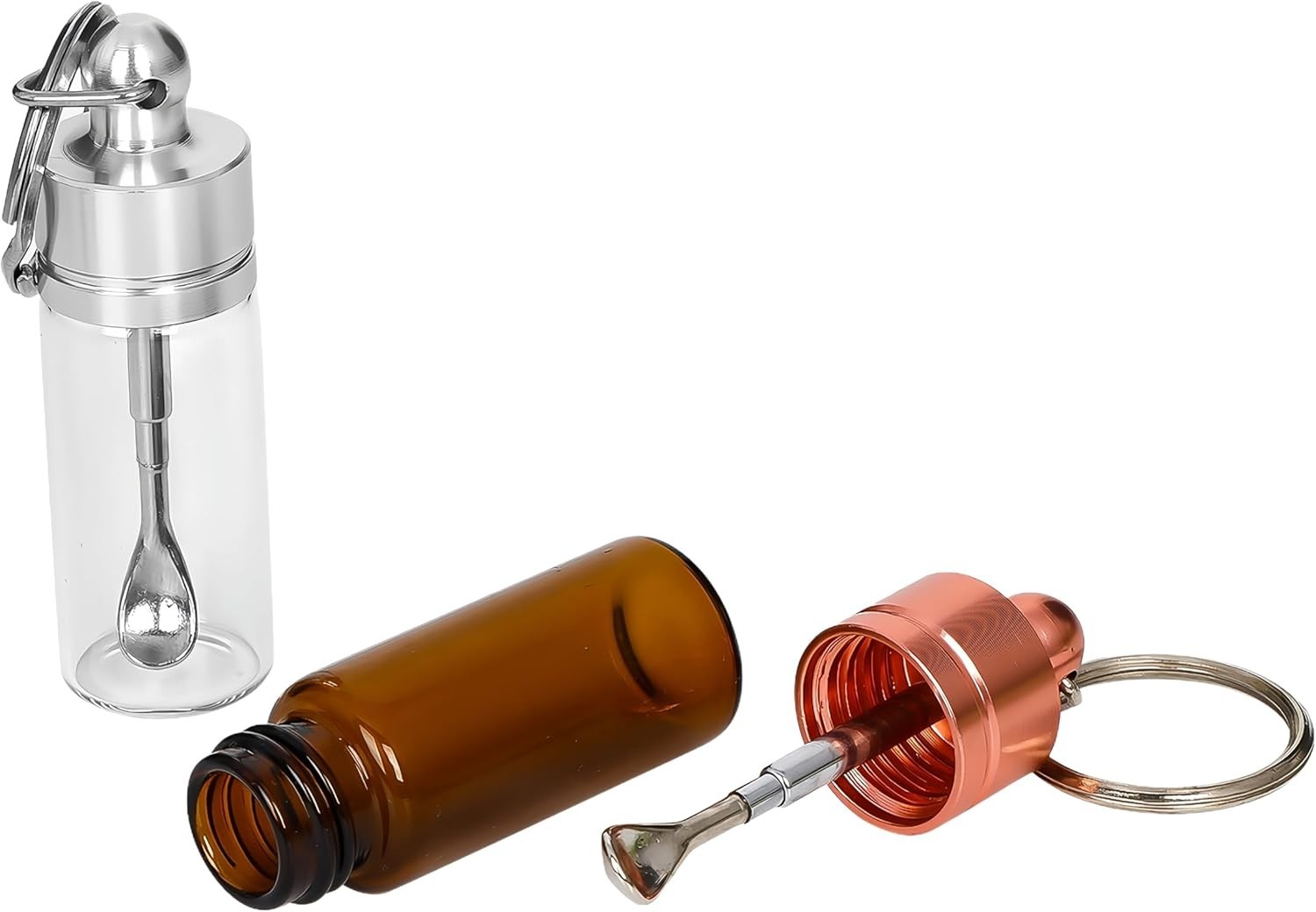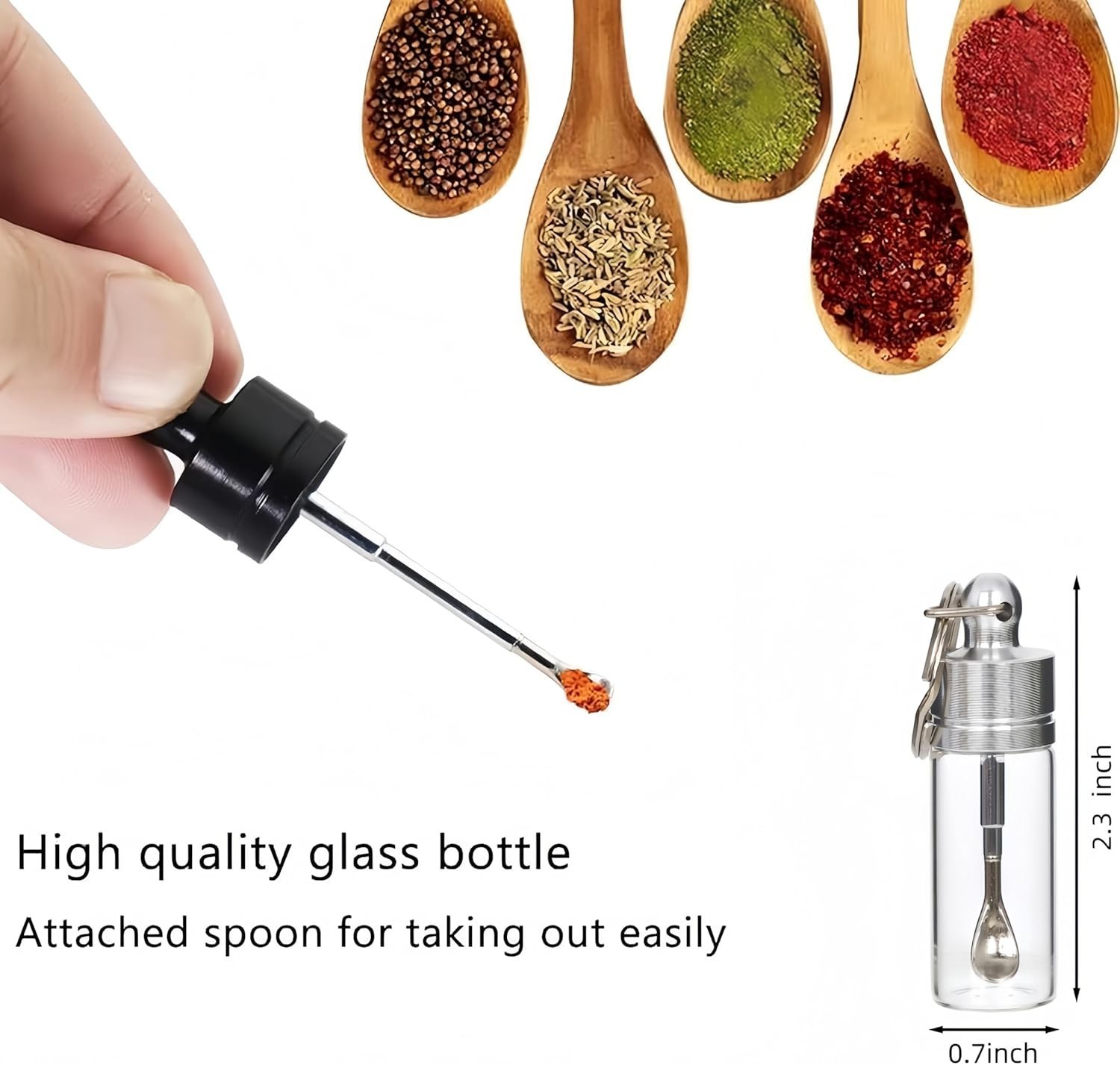 Travel Spice Containers with Spoon - Mini Glass Vial Keychain Case 2pack