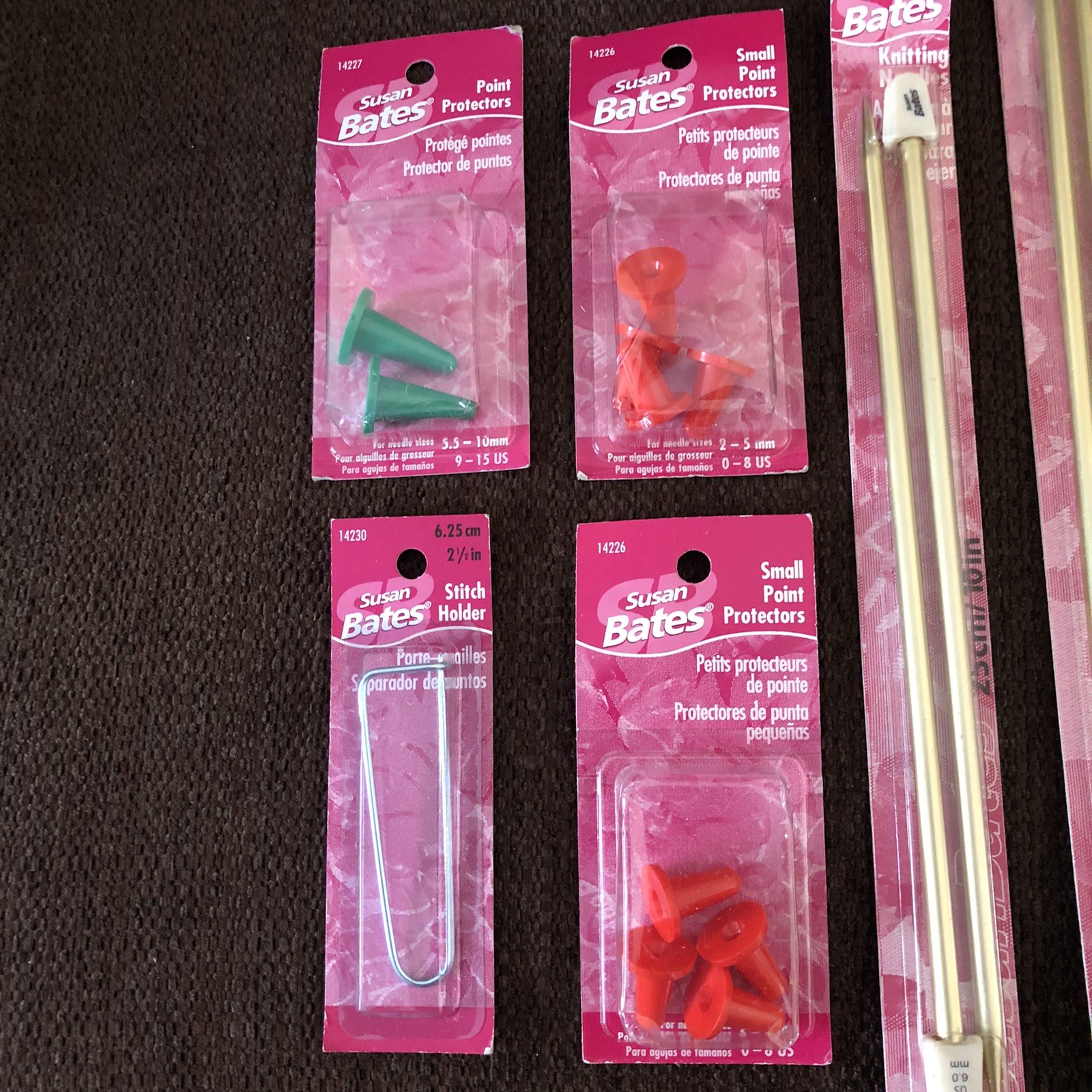 Large Lot 7 Knitting Needles Susan Bates / Lion Brand / Holder Point Protectors