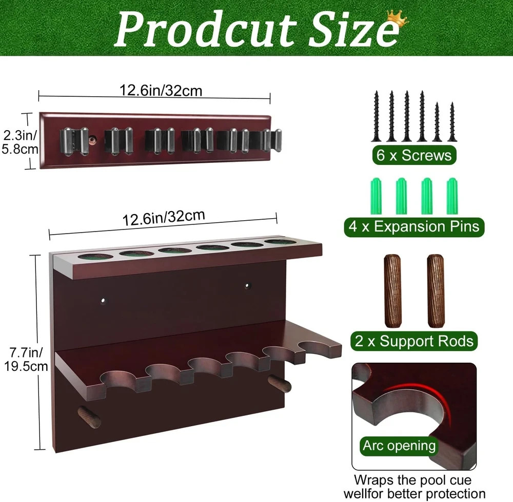 Pool Stick Holder Wall Mount,Hardwood Billiards Pool Cue Rack, Pool Cue Set Hold