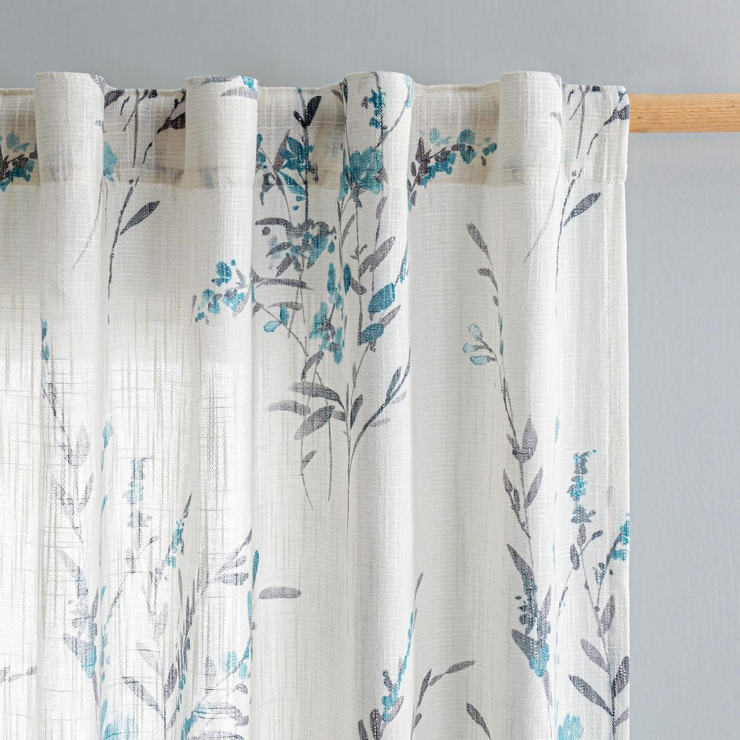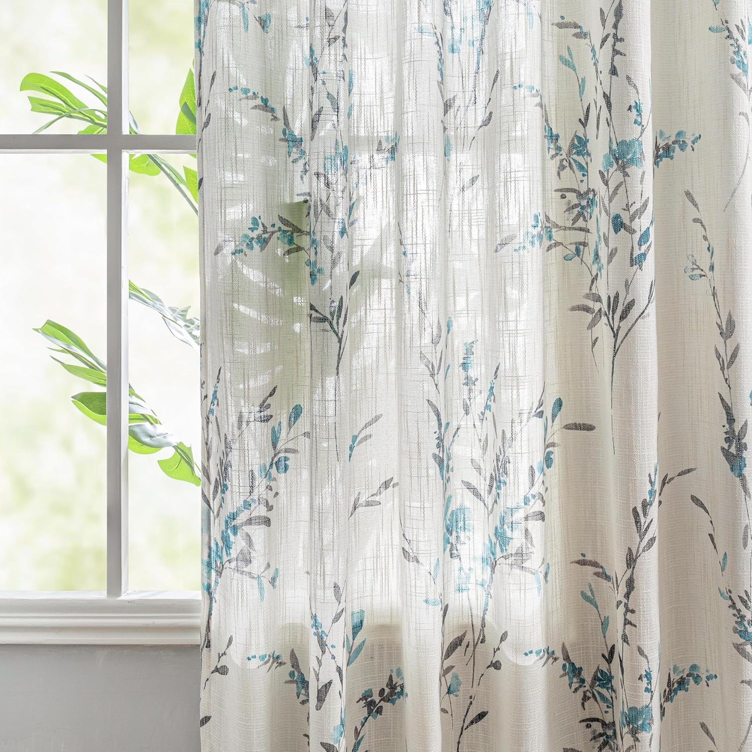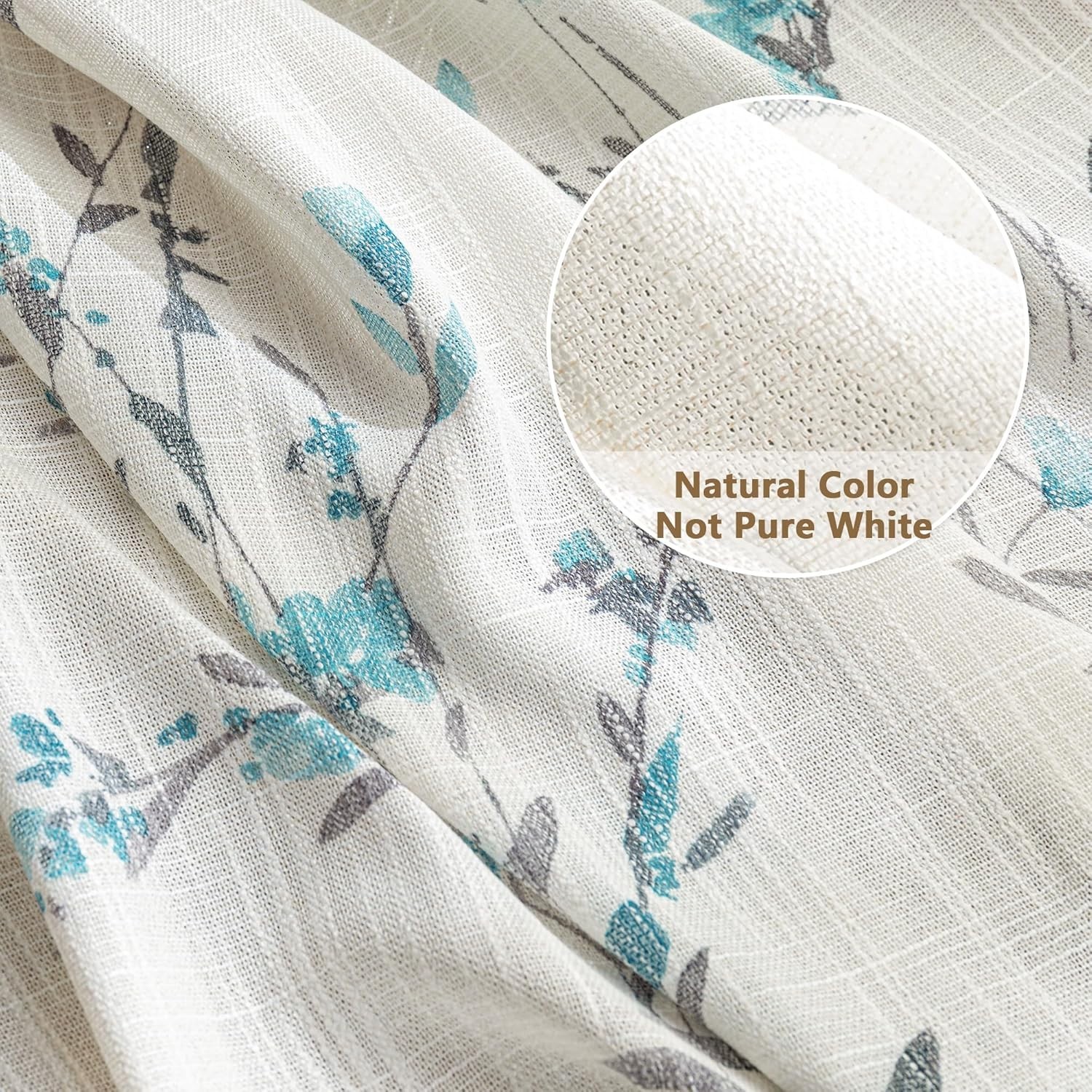 как выглядит Sheer Curtains 63 Inch Length 2 Panels for Bedroom Floral Natural Linen Blend... фото