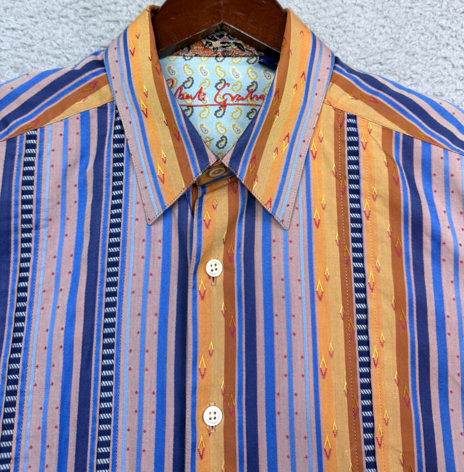 как выглядит Robert Graham Shirt Men Medium Multicolor Stripe Button Up Flip Cuff Long Sleeve фото