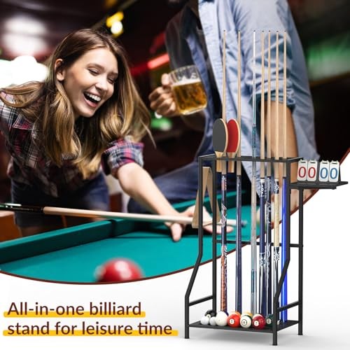 Billiards Pool Stick Rack - Pool Stick Holder for 10 Sticks, Black Bamboo