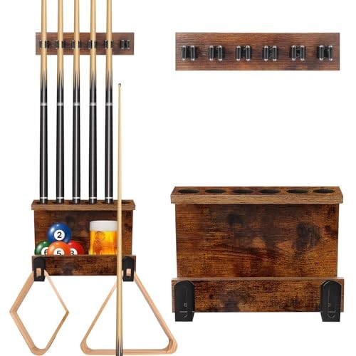 Pool Stick Holder Wall Mount, Upgrade 6-Cue Billiards Rack, Pool Table