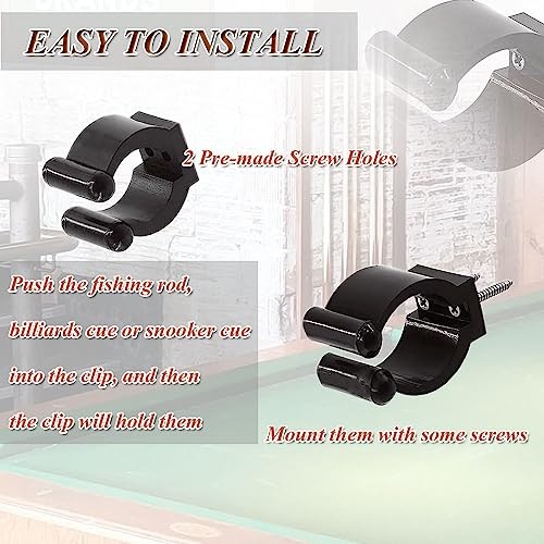 Pool Cue Holder, 10 Pieces Plastic Fishing Pole Rod Holder Clips - 10pcs black