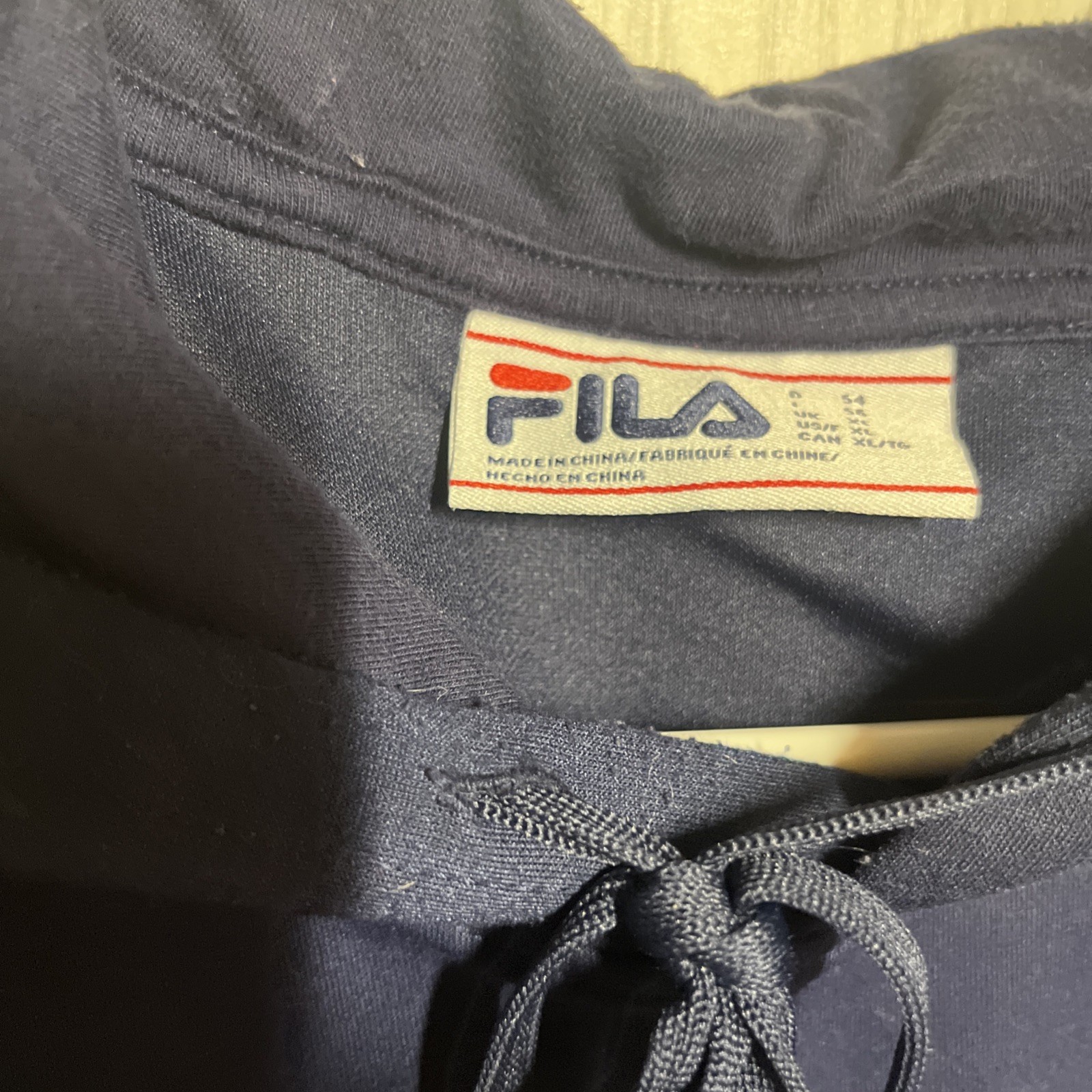 как выглядит FILA Hoodie Mens Extra Large Navy Blue Pullover Sweatshirt Kangaroo Pocket Logo фото