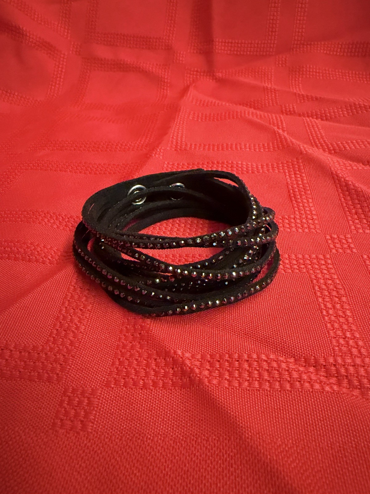 как выглядит Swarovski Black Suede Leather Crystal Wrap Bracelet W/Snap Closure фото