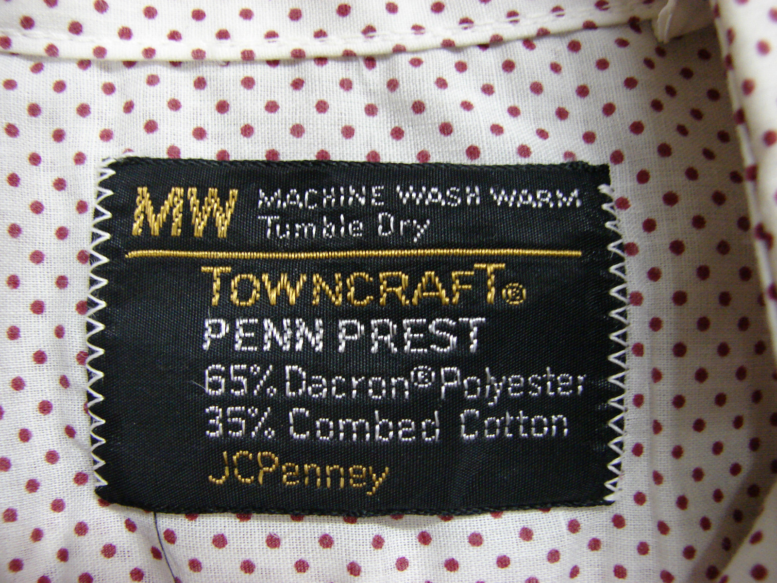как выглядит Vtg 70s Towncraft Penn Prest Beige Red PolkaDot Short Sleeve Button Front Shirt фото