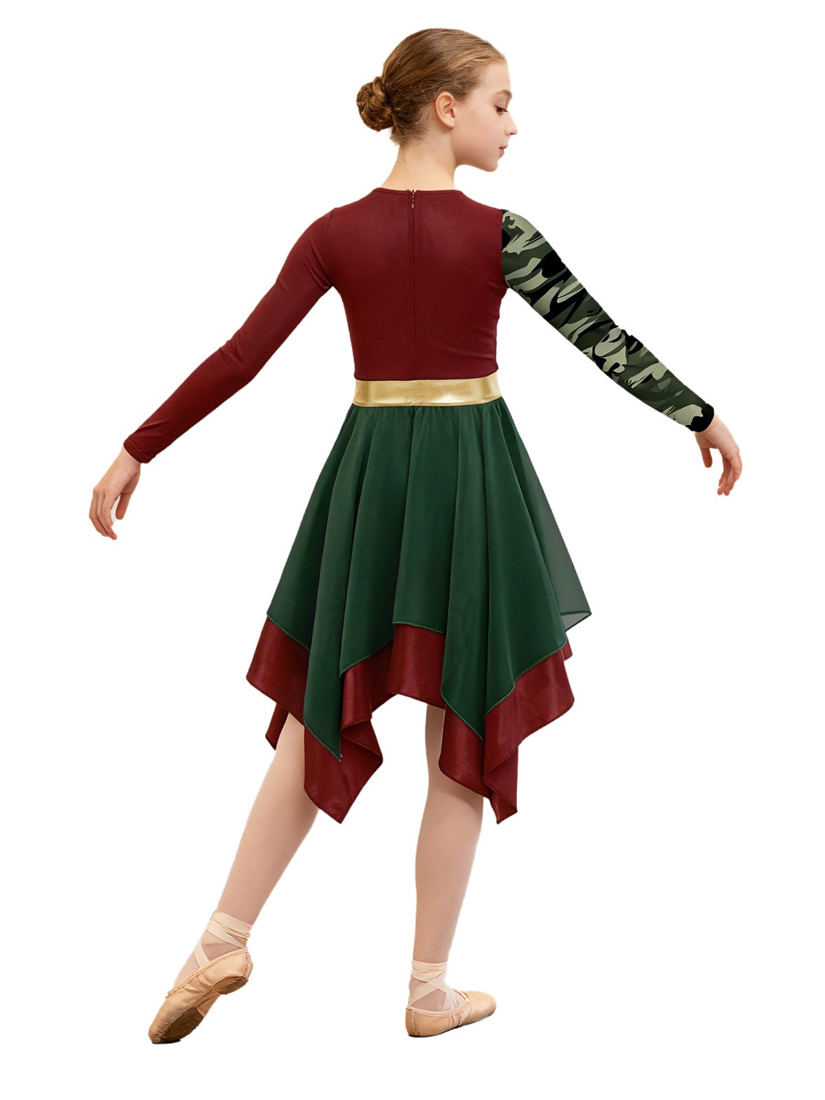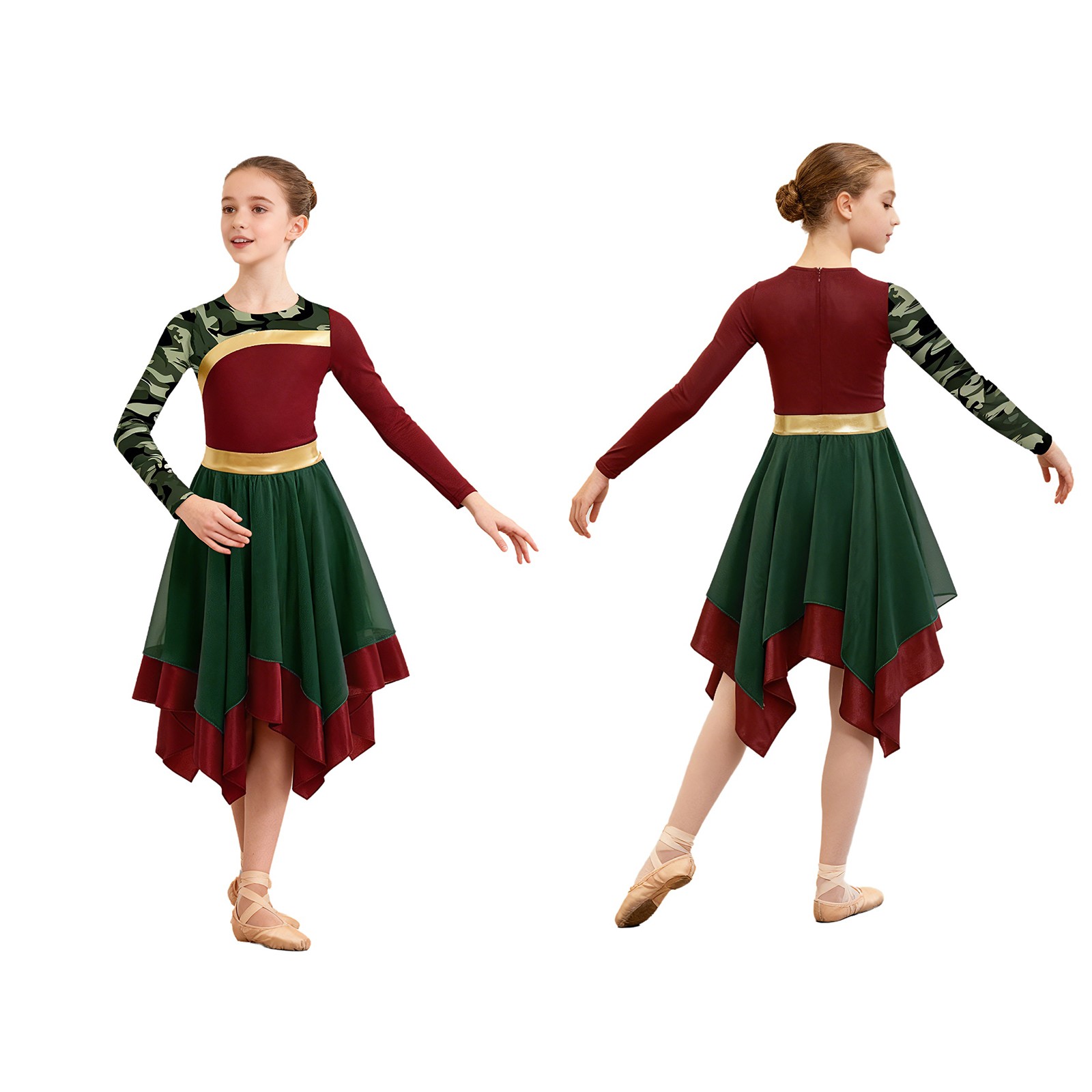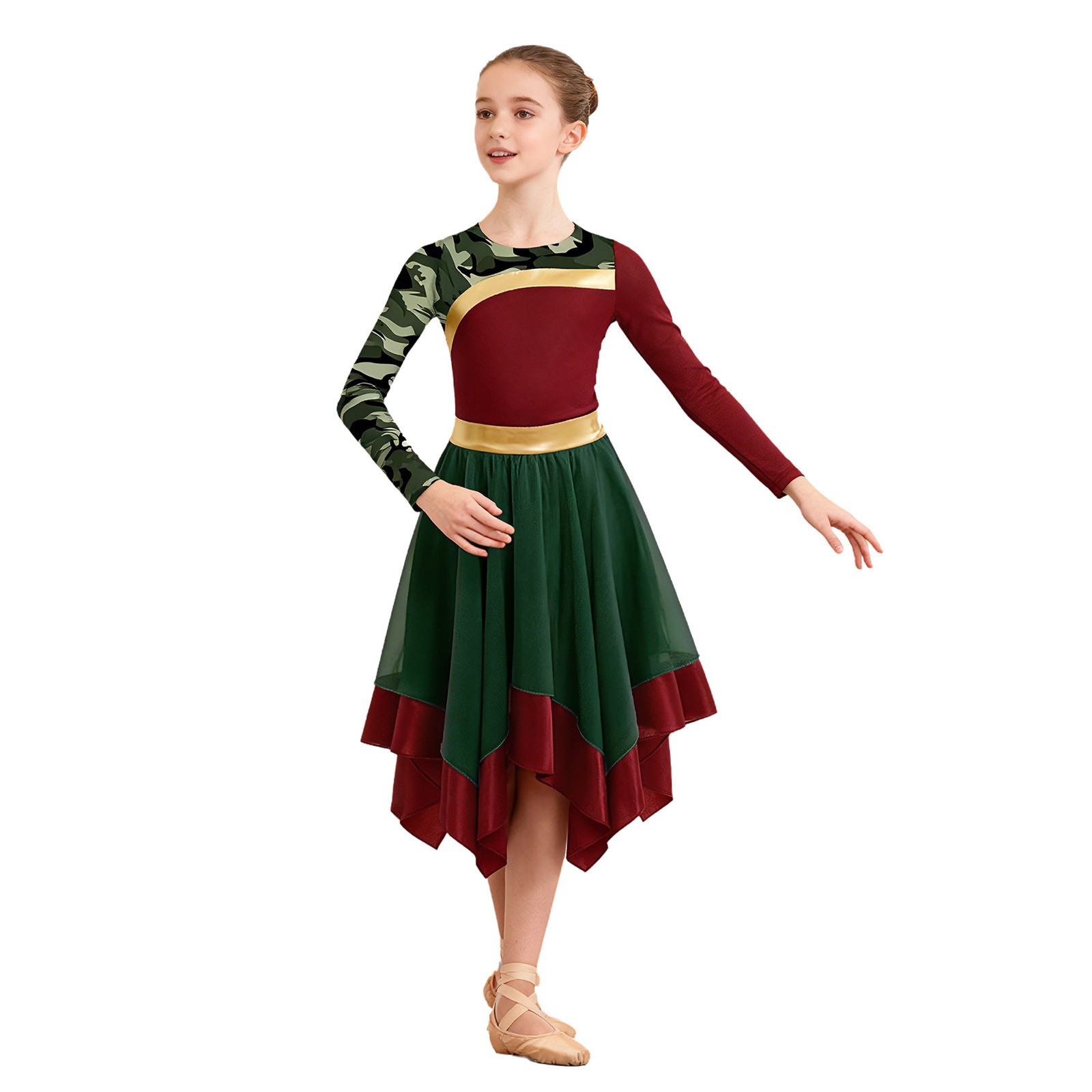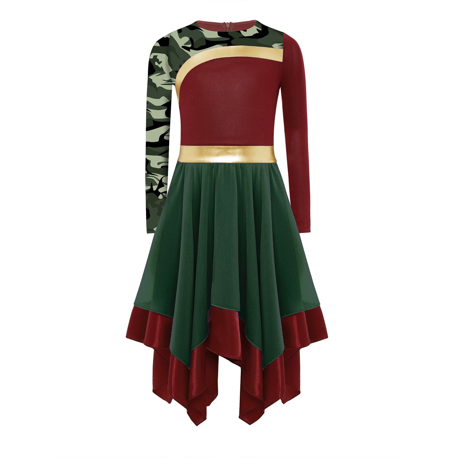 Girls Dancewear Praise Costume Robe Dress Long Sleeve Invisible Zipper Back