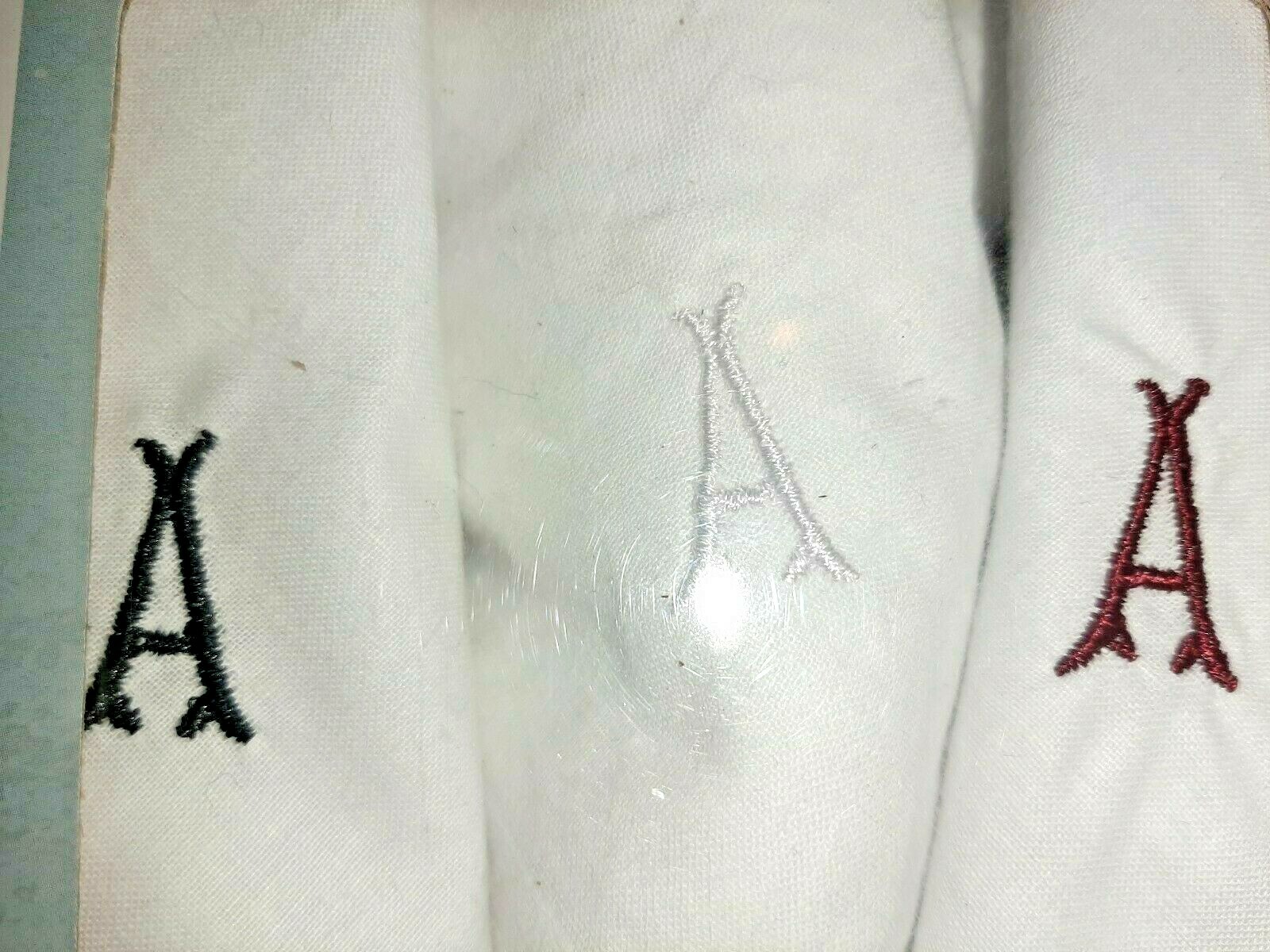 как выглядит 3 Initial "A" White All Cotton Hankies Handkerchiefs Buxton Boxed Vintage фото