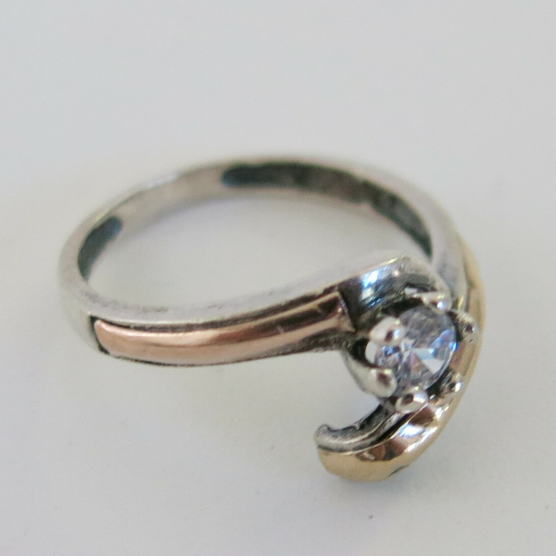 как выглядит Sterling Silver Ring with CZ Gold Vermeil 2.0g Size 5.75 5130 фото
