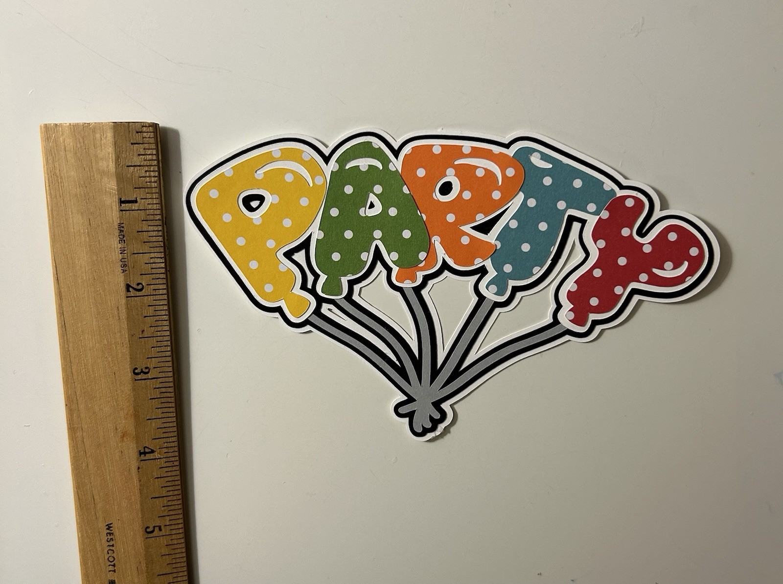 Party Balloons Birthday Scrapbook Title Handmade Paper Pieced Die Cut