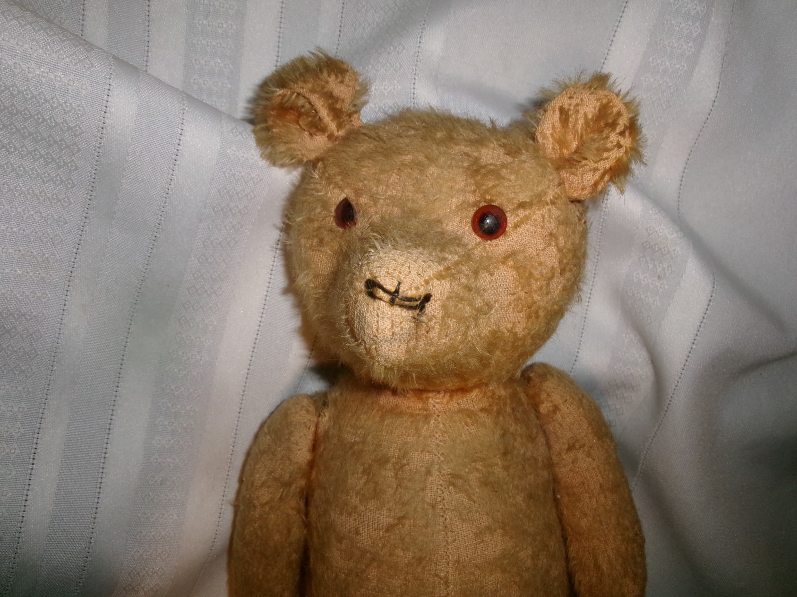 как выглядит Antique Vintage 15" Jointed Teddy Bear W/Glass Eyes, Straw Filled. L K фото
