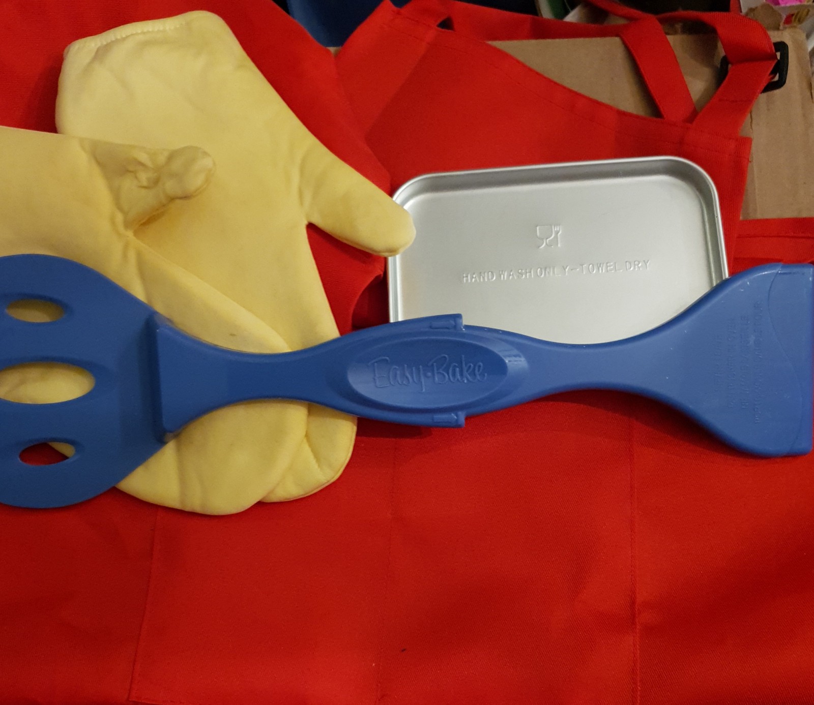 как выглядит Easy Bake oven. w chef hat, apron, 2 oven mitts, pan, spatula. In box. фото