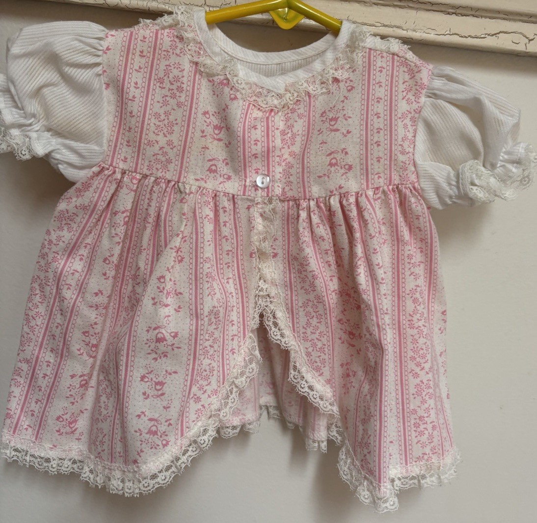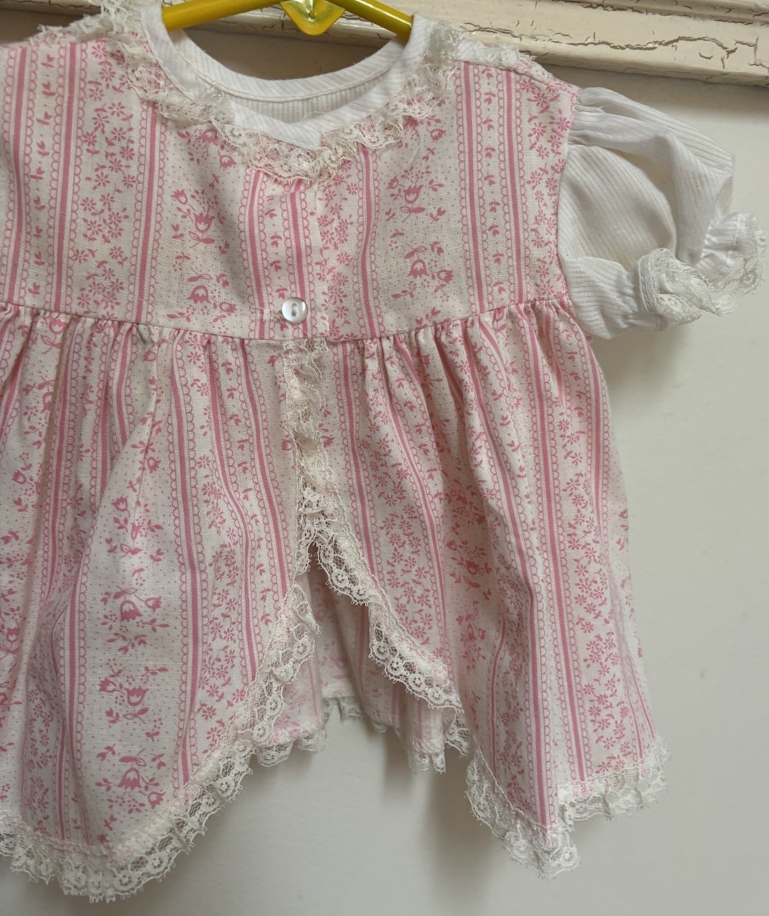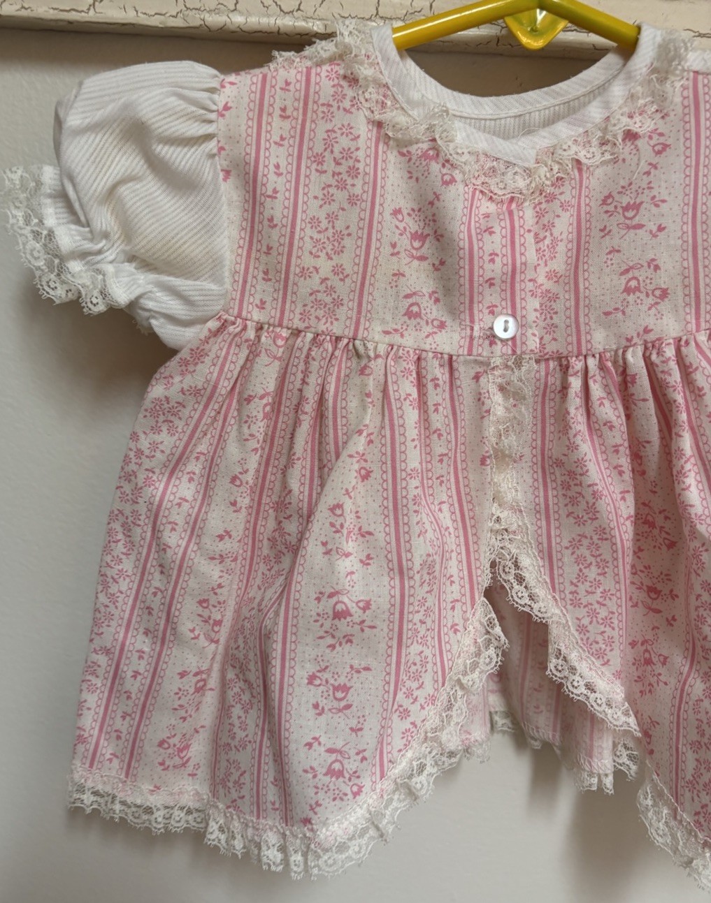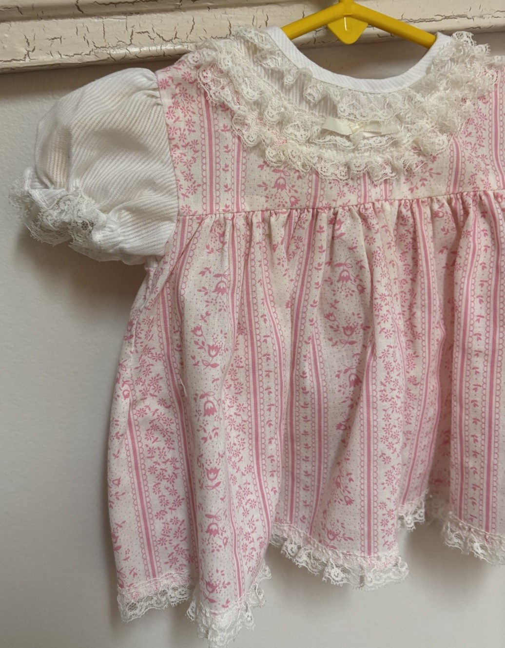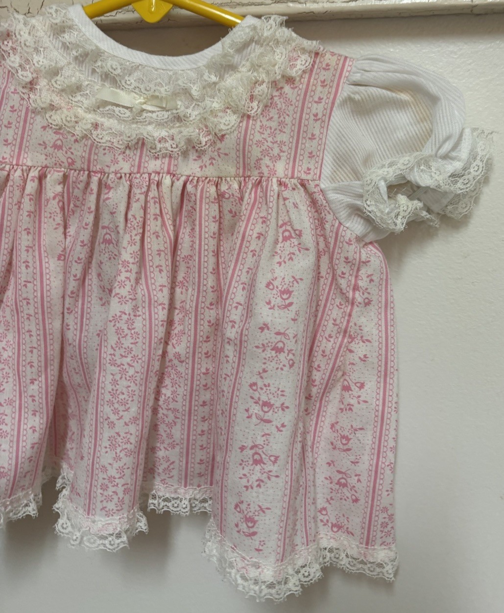 Vintage Cutest One Dress Pink Floral Ruffles Lace Short Sleeve Size 9M Baby Girl