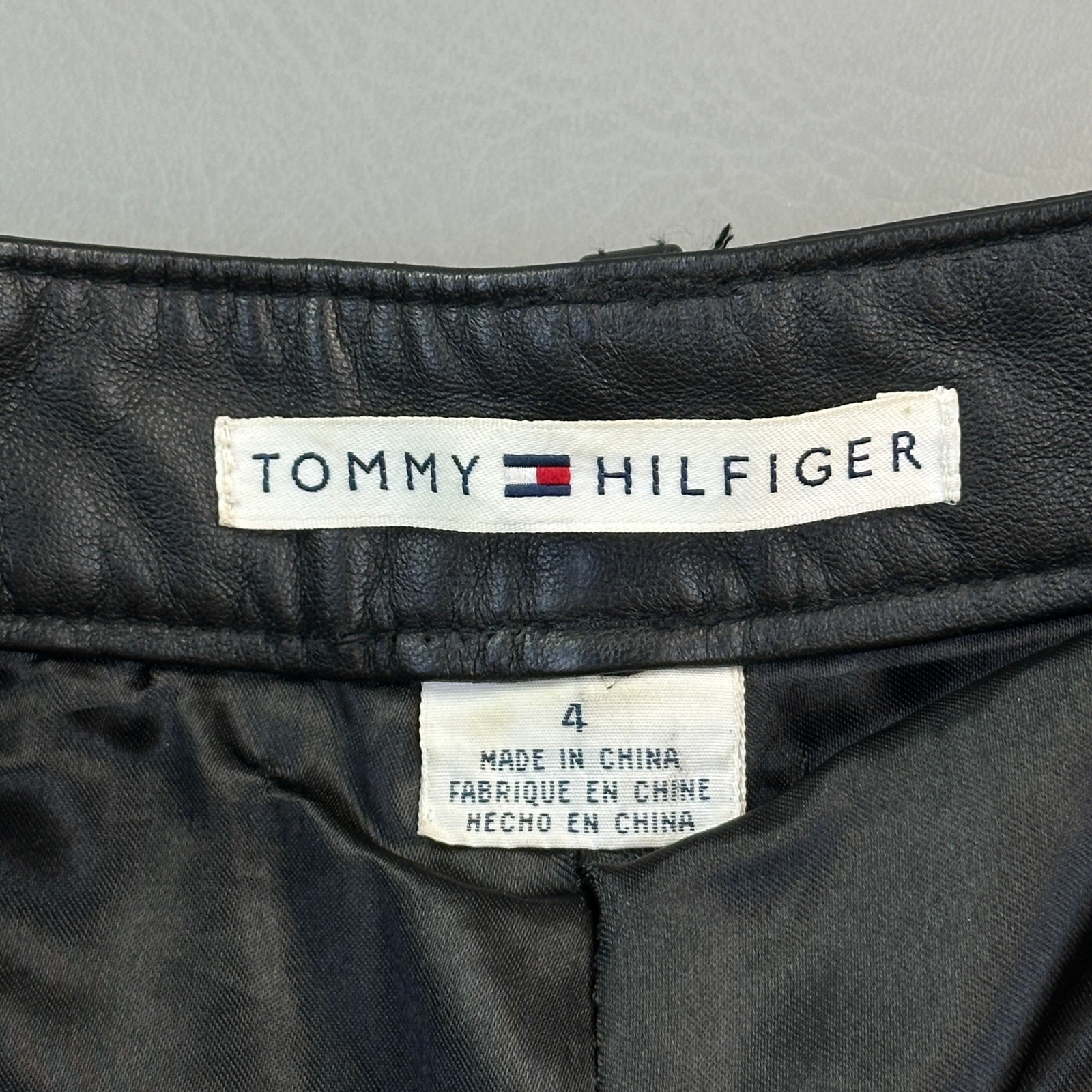 Vintage Tommy Hilfiger Pants Women's 4 28x30 Black Leather Mid Rise Straight Y2K