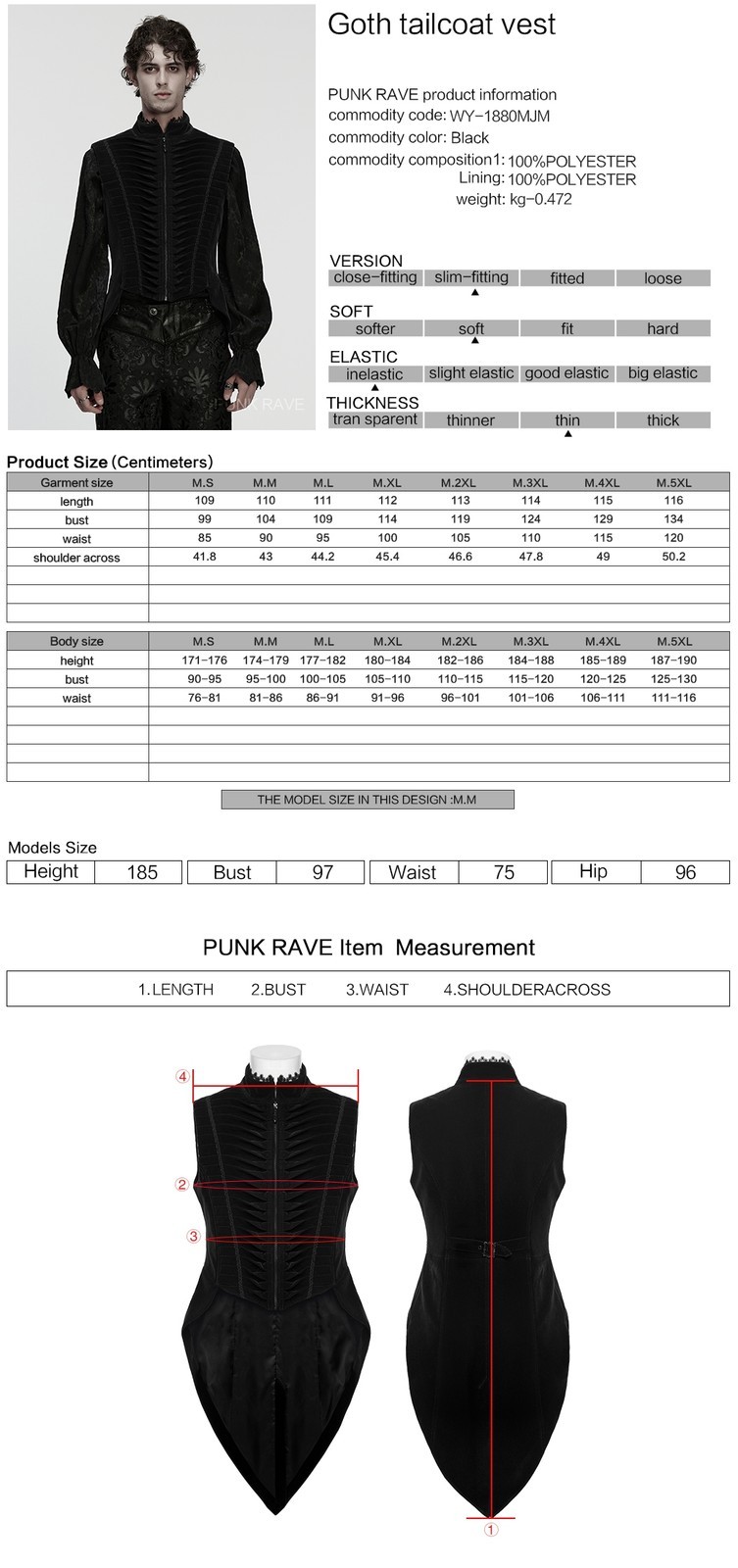как выглядит Punk Rave Men Black Gothic Noble Velvet Tailcoat Vest Elegant Waistcoat фото