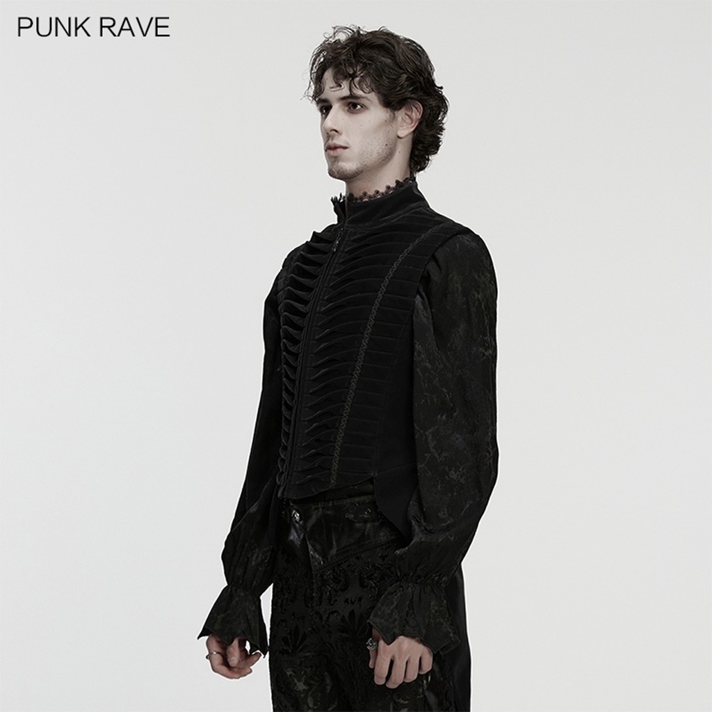 Punk Rave Men Black Gothic Noble Velvet Tailcoat Vest Elegant Waistcoat