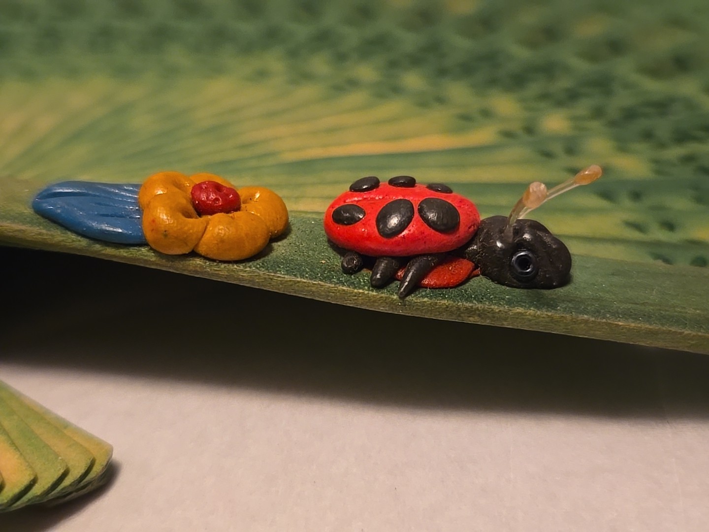 как выглядит Vintage Green Wooden Spanish Folding Fan W/ Clay Lady Bug Decoration Nicaragua фото