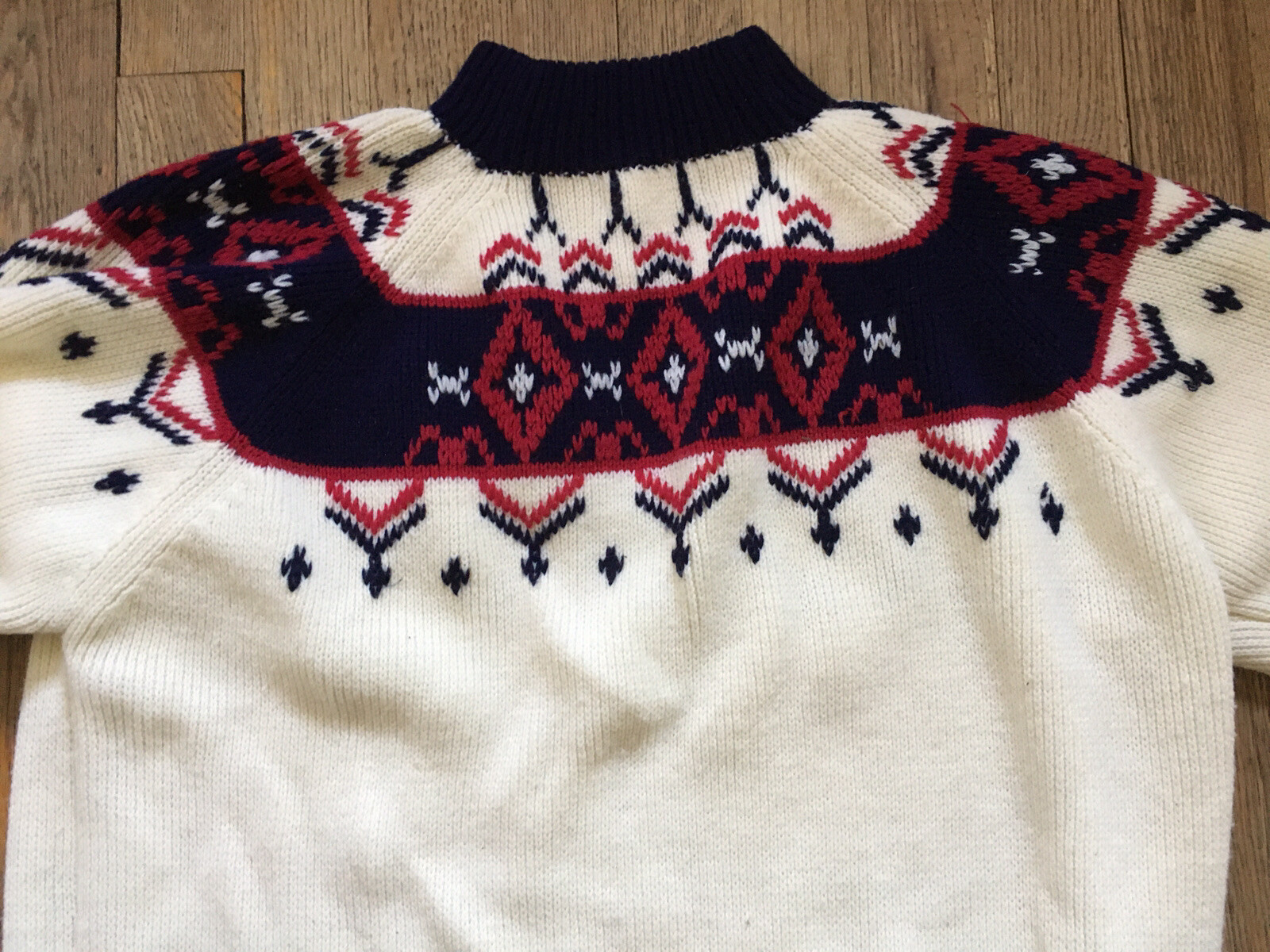 как выглядит VTG 60s-70s JC Penney Mock Neck Fair Isle Sweater, White/Navy, Unisex, Men s L фото