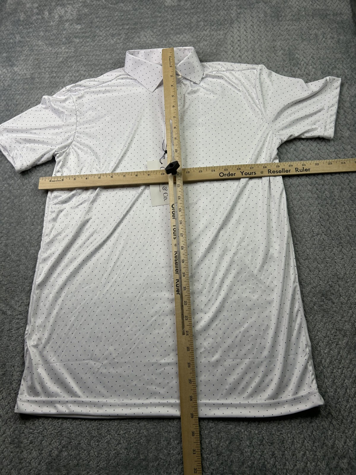 Collars and Co White Navy Polka Dot Polo Semi Spread Collar Mens Small