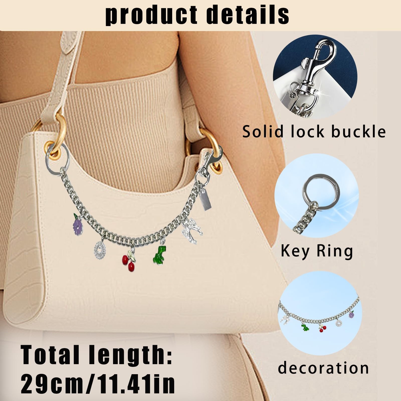 Silver Cute Bag Charms Wallet Chain Keychains Gold Chain For Purse Purse For...