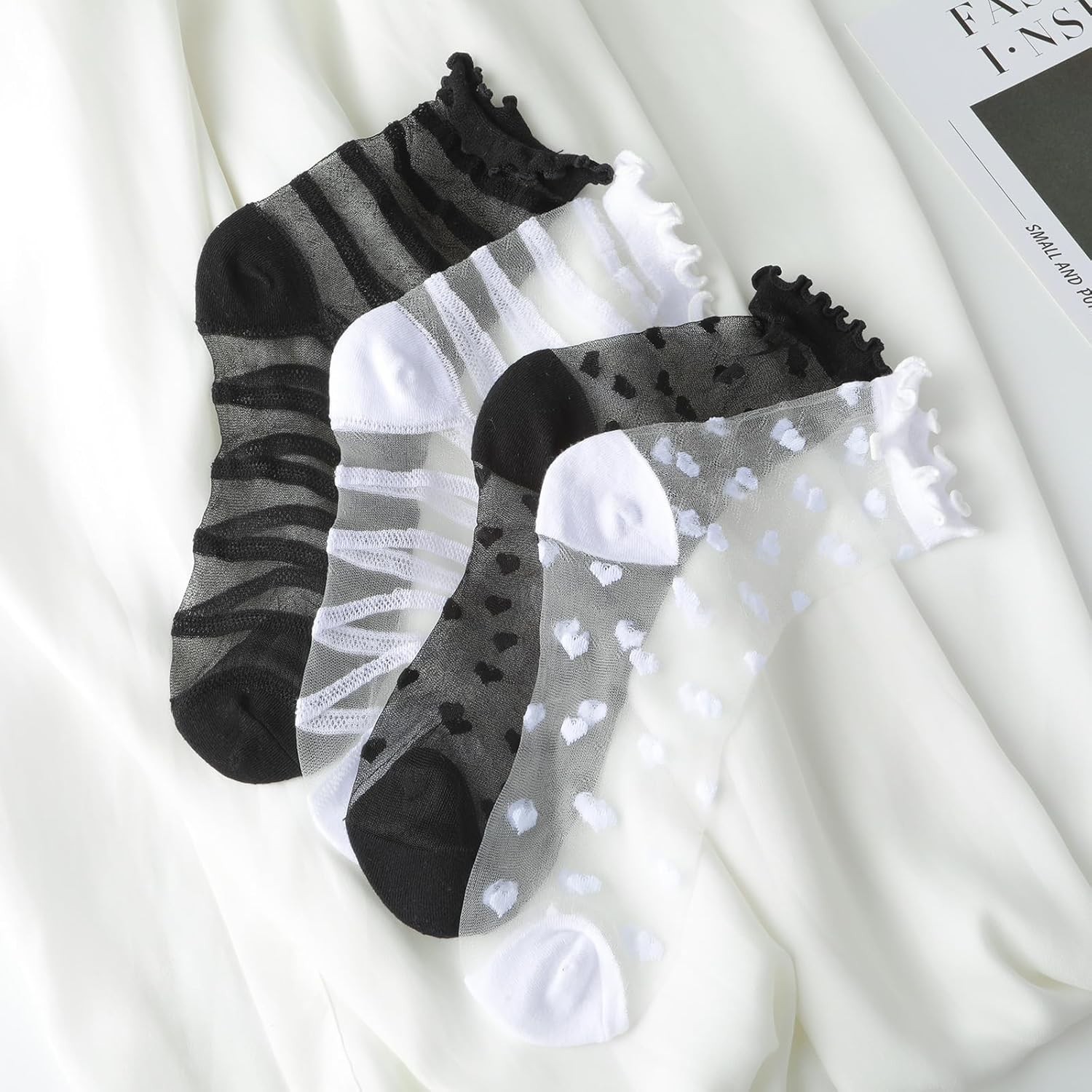 как выглядит 4Pairs Sheer Ankle Socks Women, See Through Ruffle Ultra Thin Lace See... фото