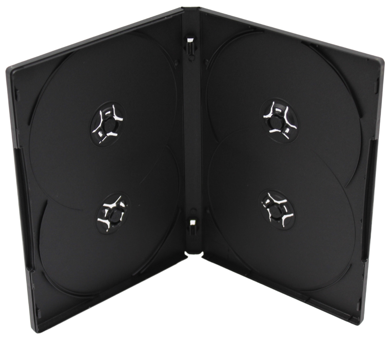 100 Pack Standard Black DVD 4 Disc 14mm 2 Discs Each Side Replacement Cases