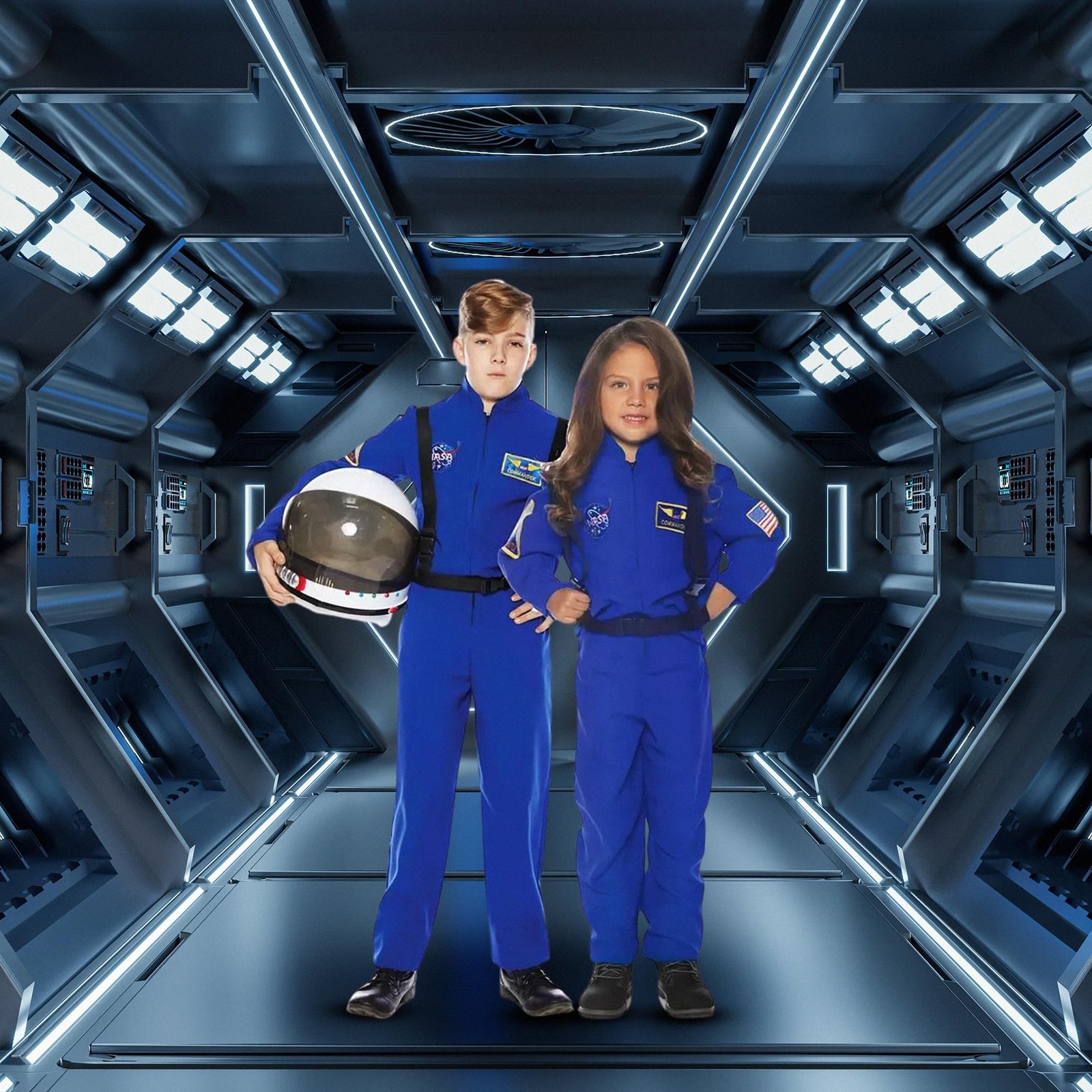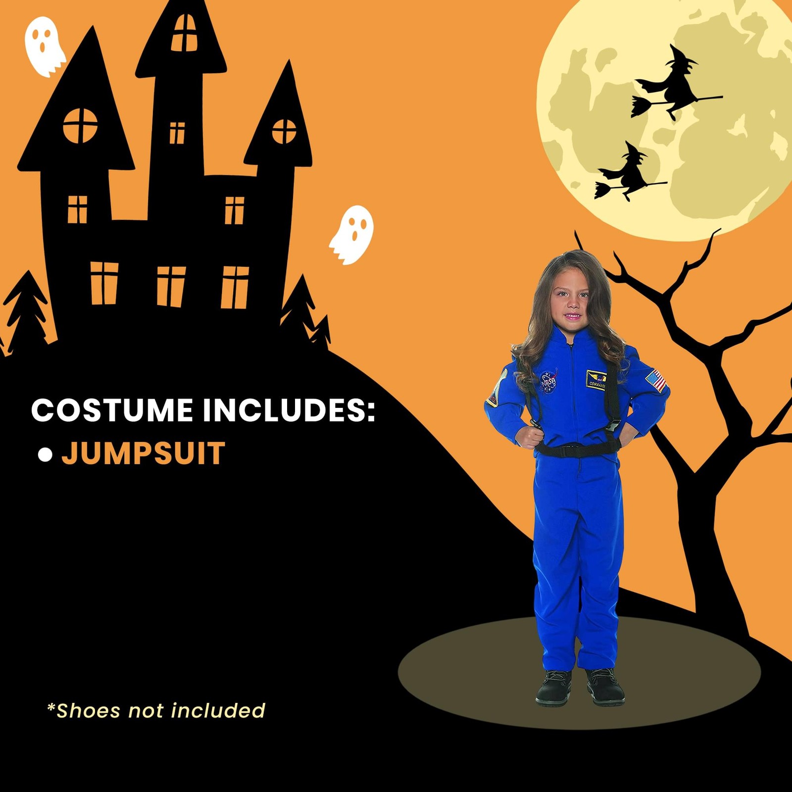 Особенности: Includes astronaut style blue jumpsuit with embroidered patches a