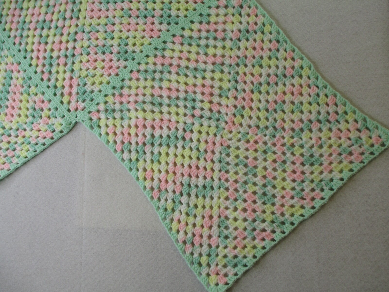 Vintage Crochet Shawl Prairie Cottagecore Green Pink Yellow Granny Gear