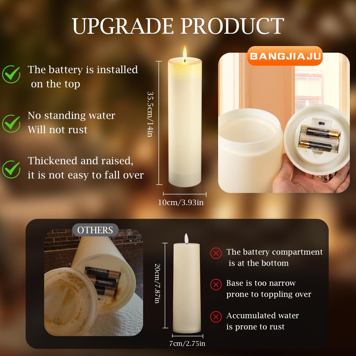 14 x 4 Large Flameless Candles with Remote Timer, Waterproof Outdoor Batt...