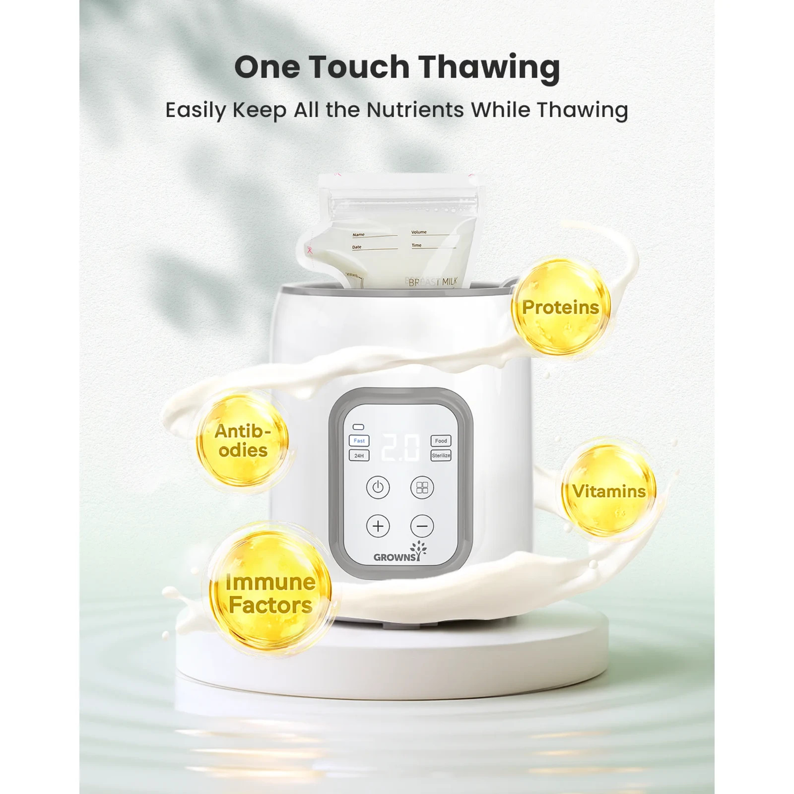 GROWNSY N1T Baby Bottle Warmer 8-in-1 w/ Timer Temp Control - White/gray 9518