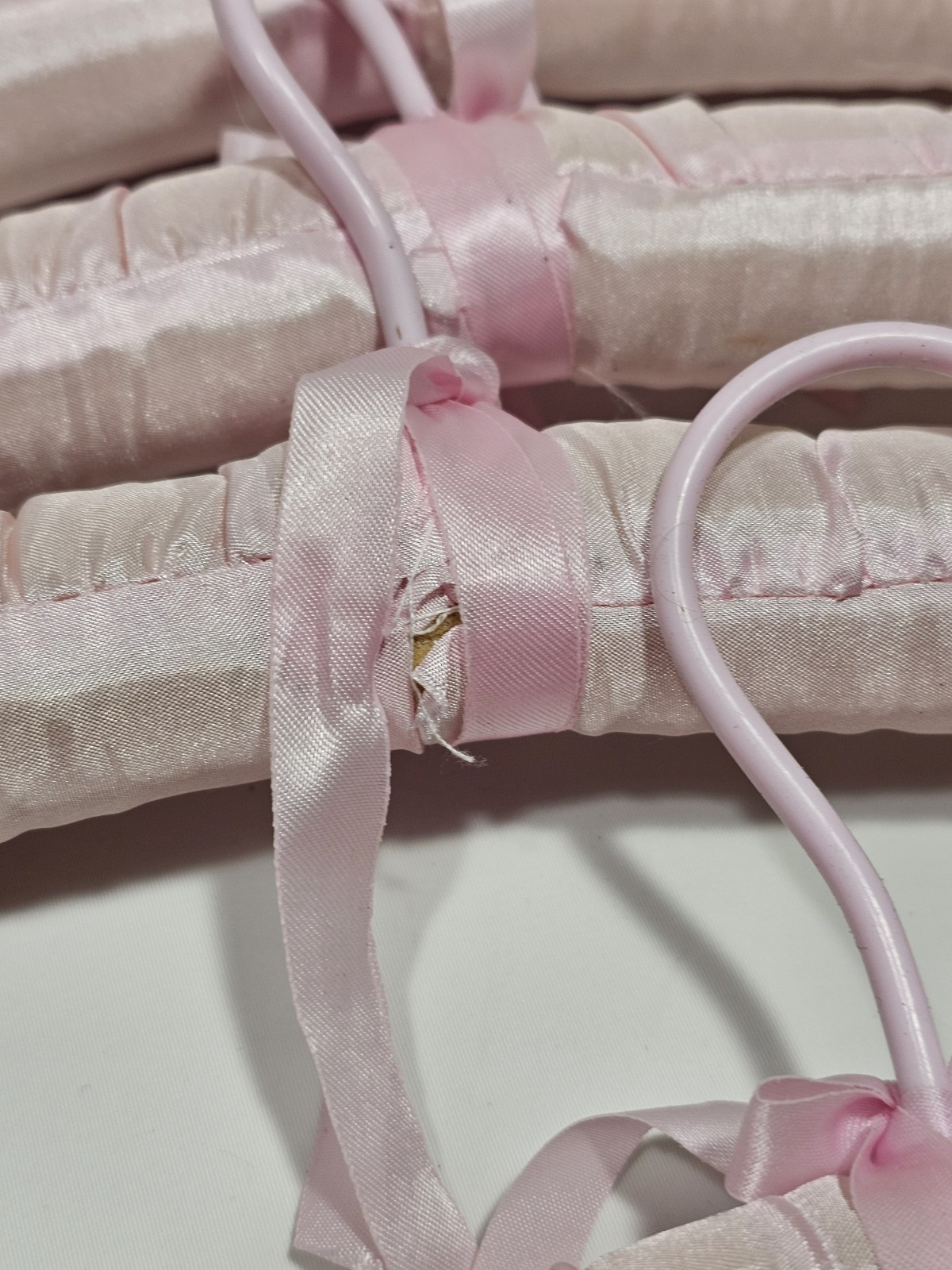 как выглядит Lot of 7 Vintage Padded Satin Lace Boudoir Lingerie Hangers Light Pink Color фото