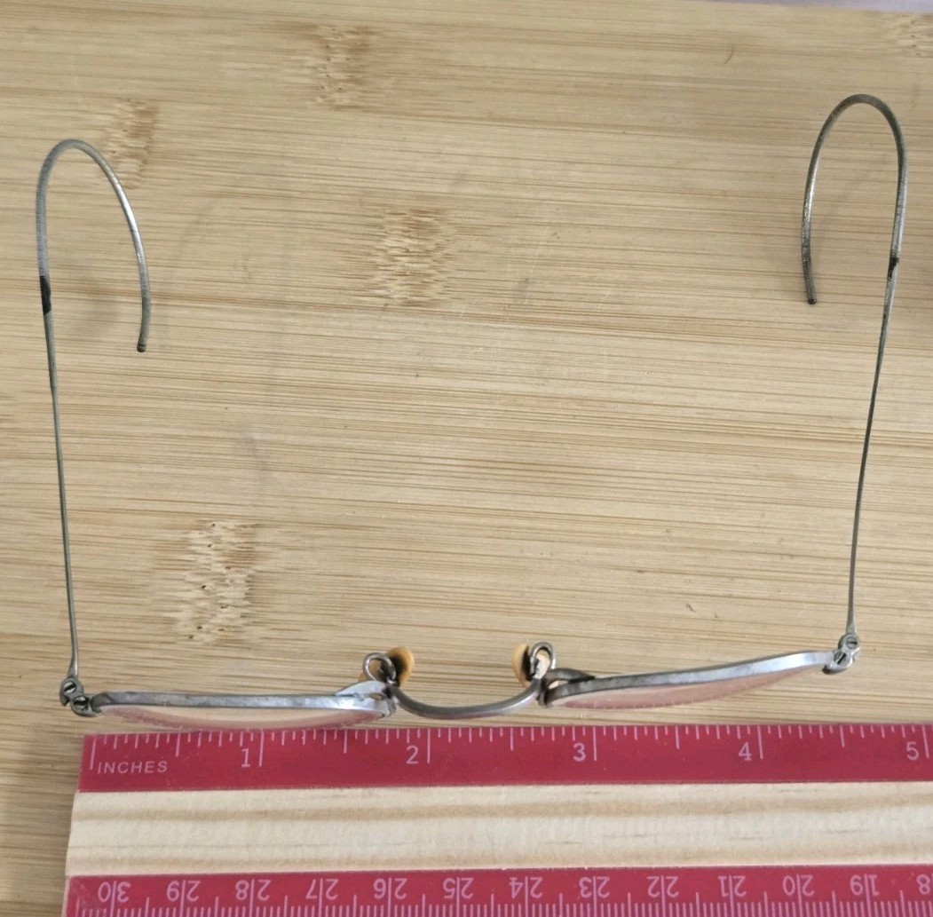 Antique Wire Rim Riding Temple Spectacles w/Leather Case Late 1800s/Early 1900s