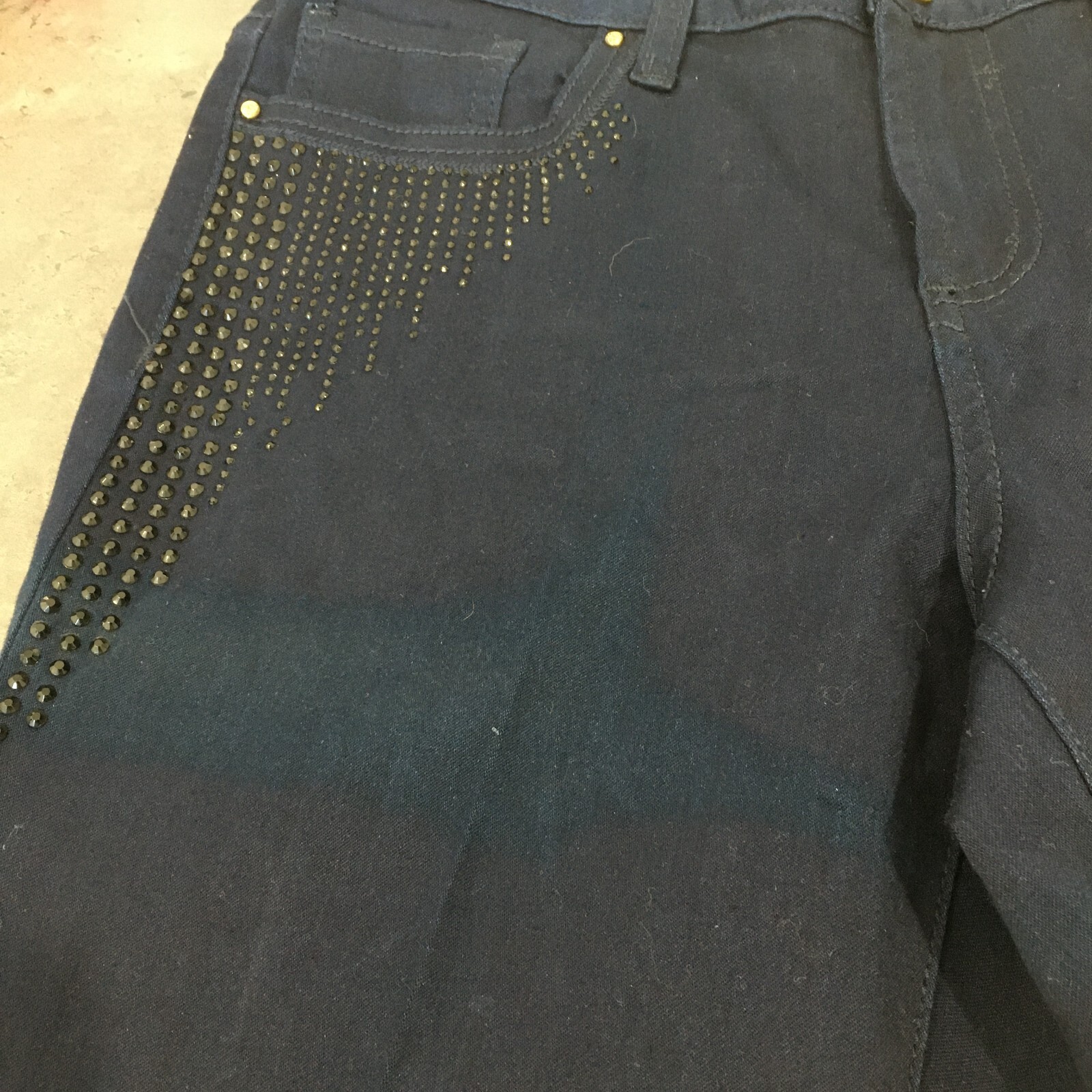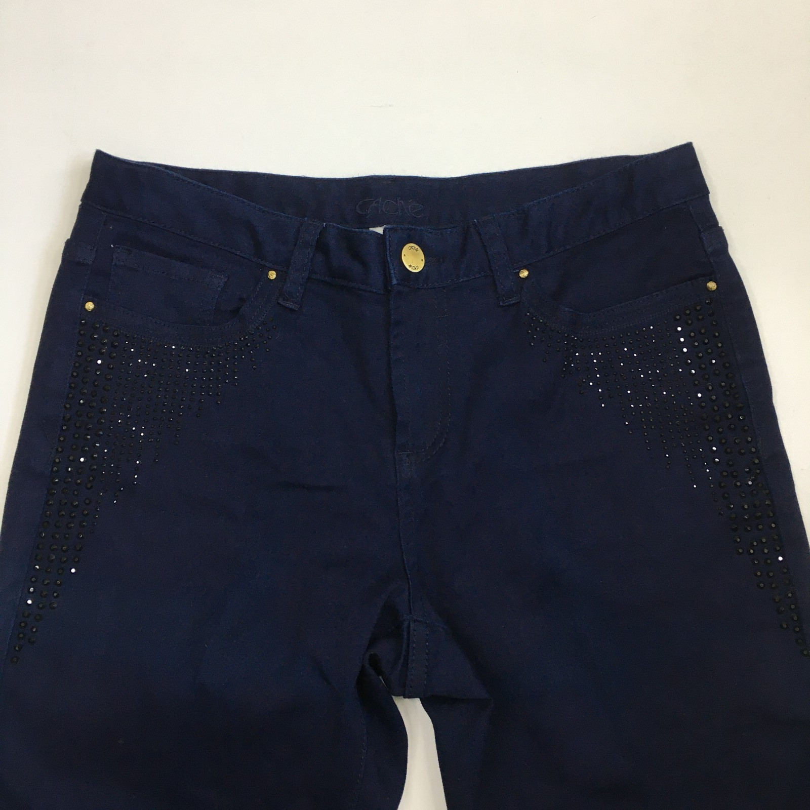 CACHE Womens sz 6 Dark Blue Rhinestone Embellishment Zip Ankle Denim Jeans