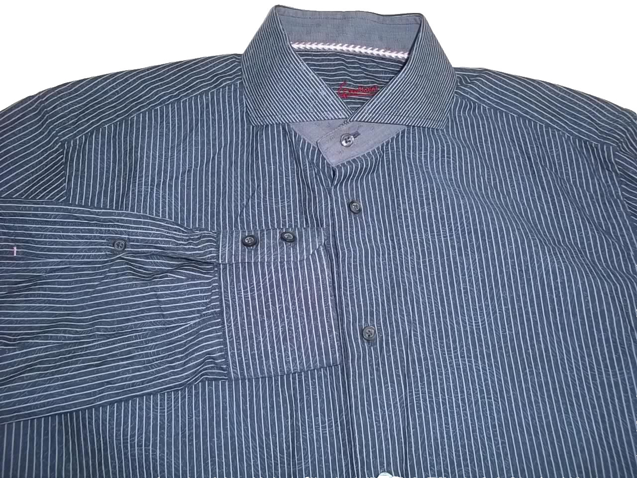 как выглядит Robert Graham Blue/ Gray Stripe Pattern Long Sleeve Cotton Shirt Size 16 x 35 фото