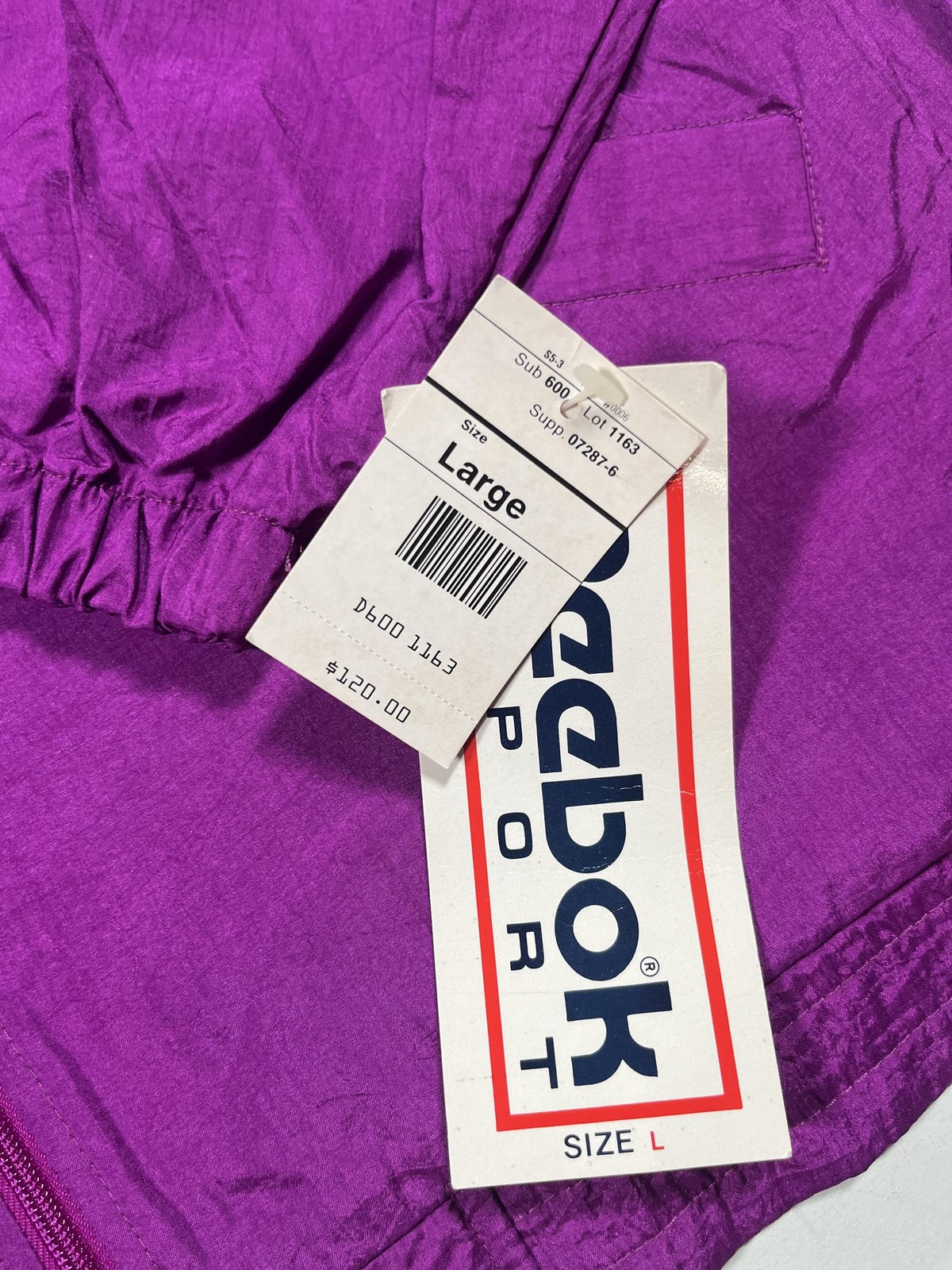 New Vintage Reebok Sport Jacket Large Purple Nylon Full Zip Windbreaker 90s