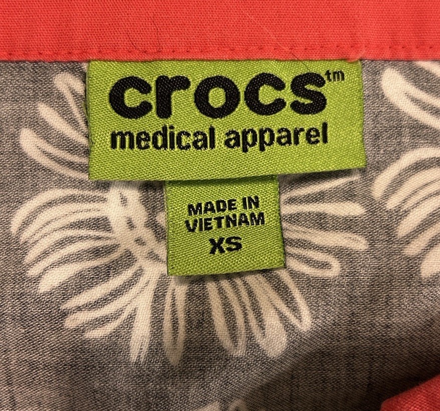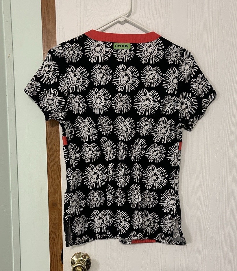 Crocs Women s Scrub Top Black White Floral With Hot Pink Accents Size XS