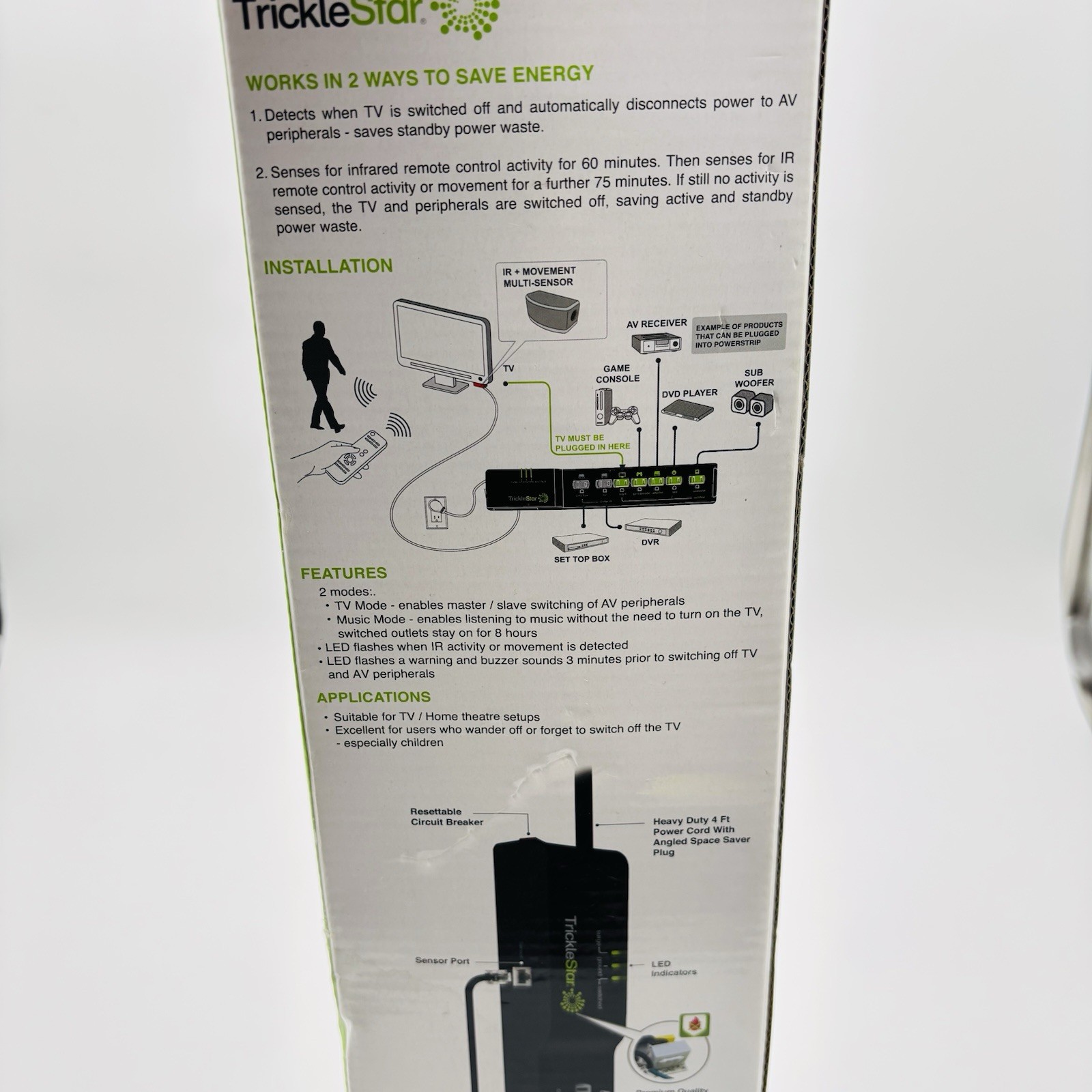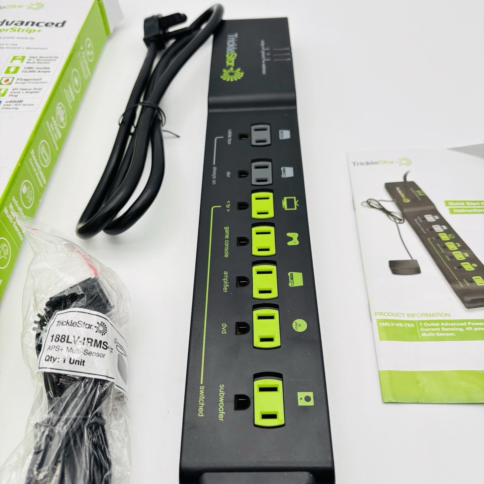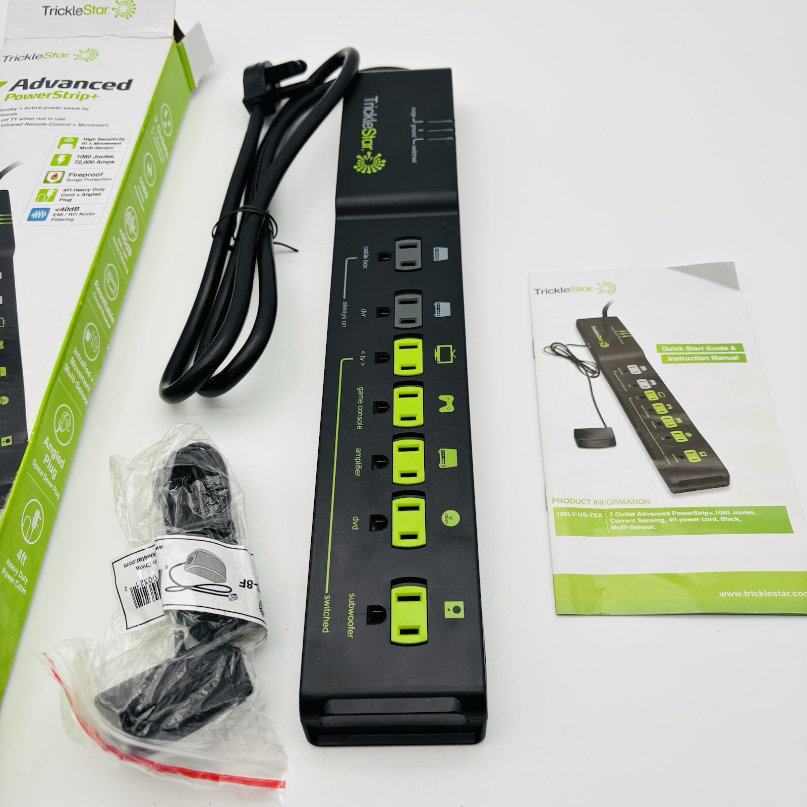 TrickleStar 7 Outlet AV Advanced Power Strip - Black - New In Box.