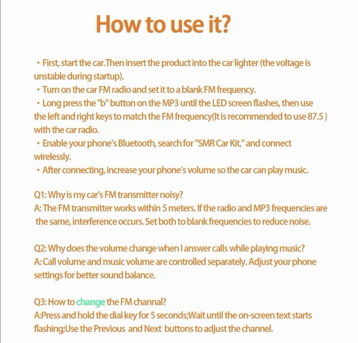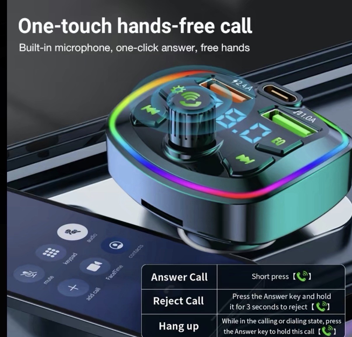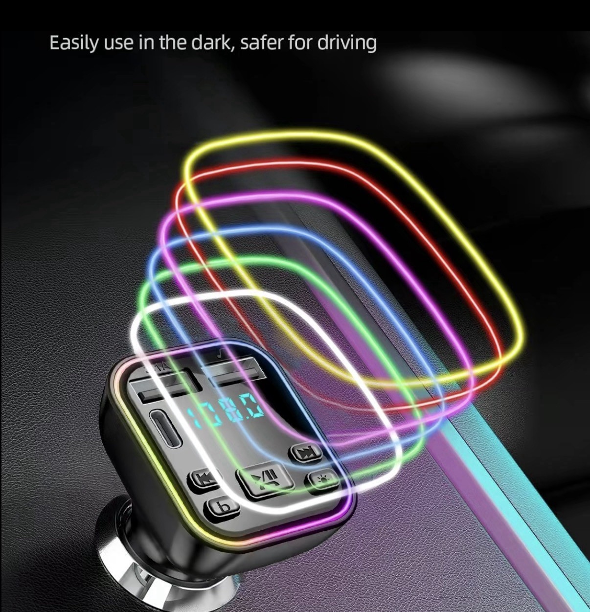 Nuokaiqi Car MP3 Player Bluetooth 5.3 FM Transmitter with 7-Color RGB LED
