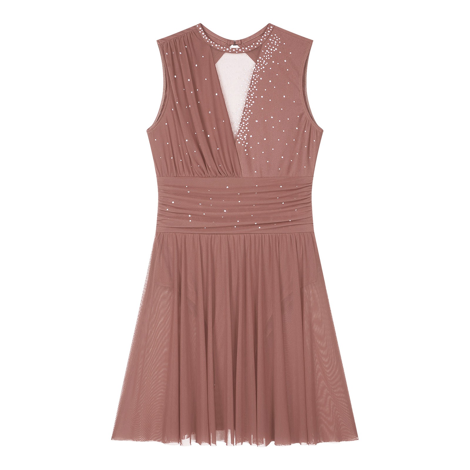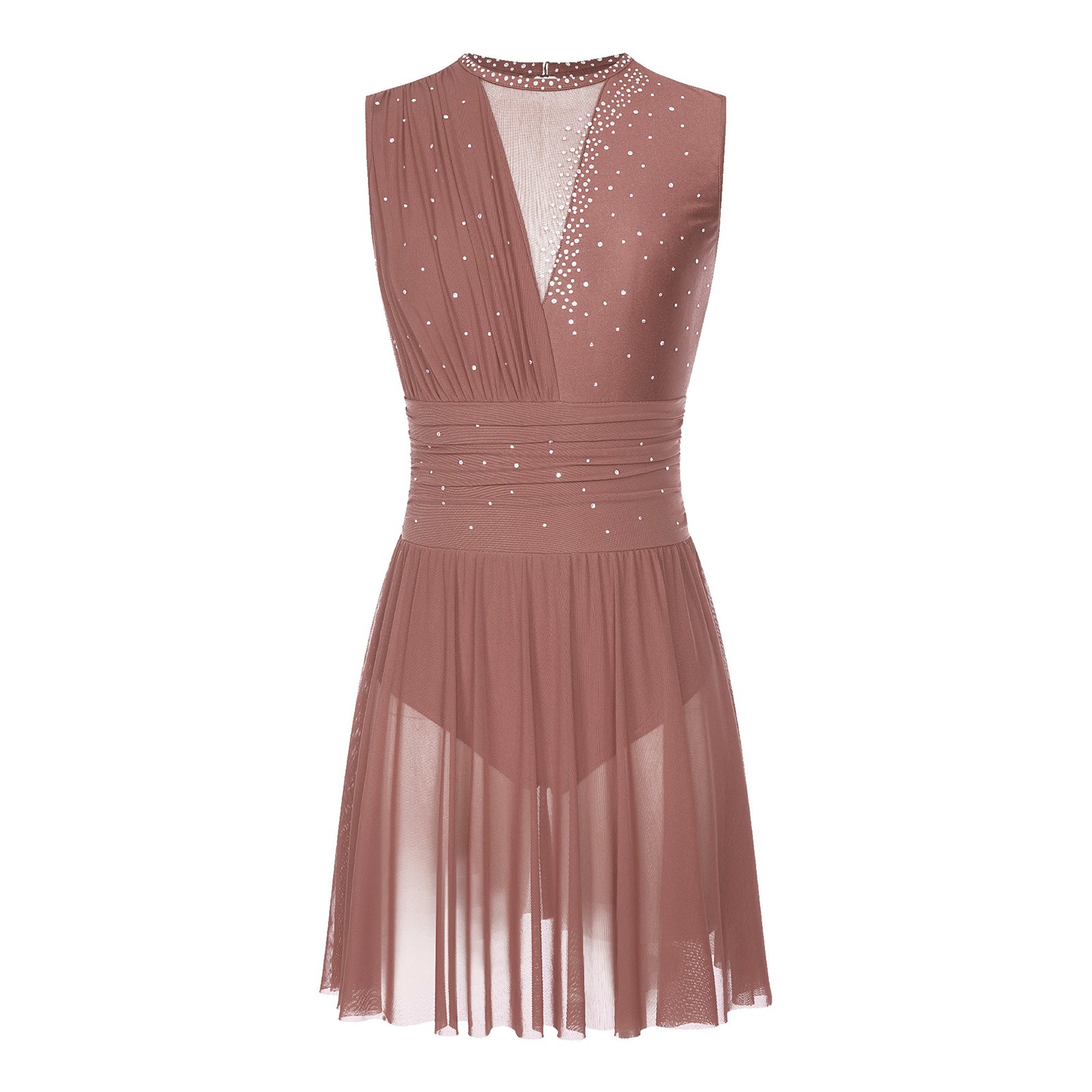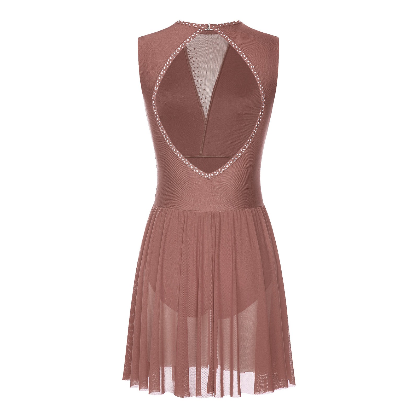 Women Figure Skating Dress Mesh Sparkly Lyrical Ballet Dance Leotards Dancewear