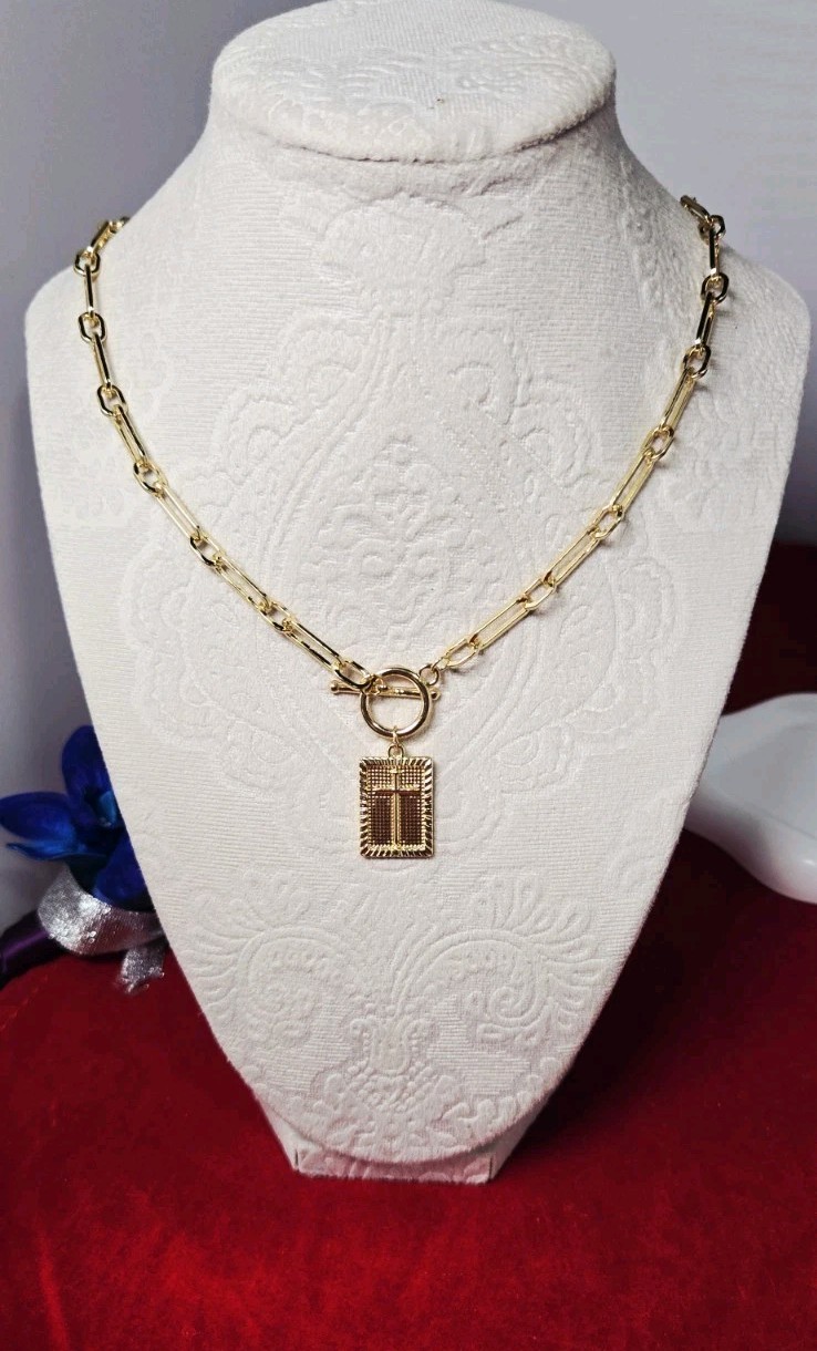 Gold Paperclip Chain Necklace Cross Pendant 20 Long NIP Easter/Christian Gift