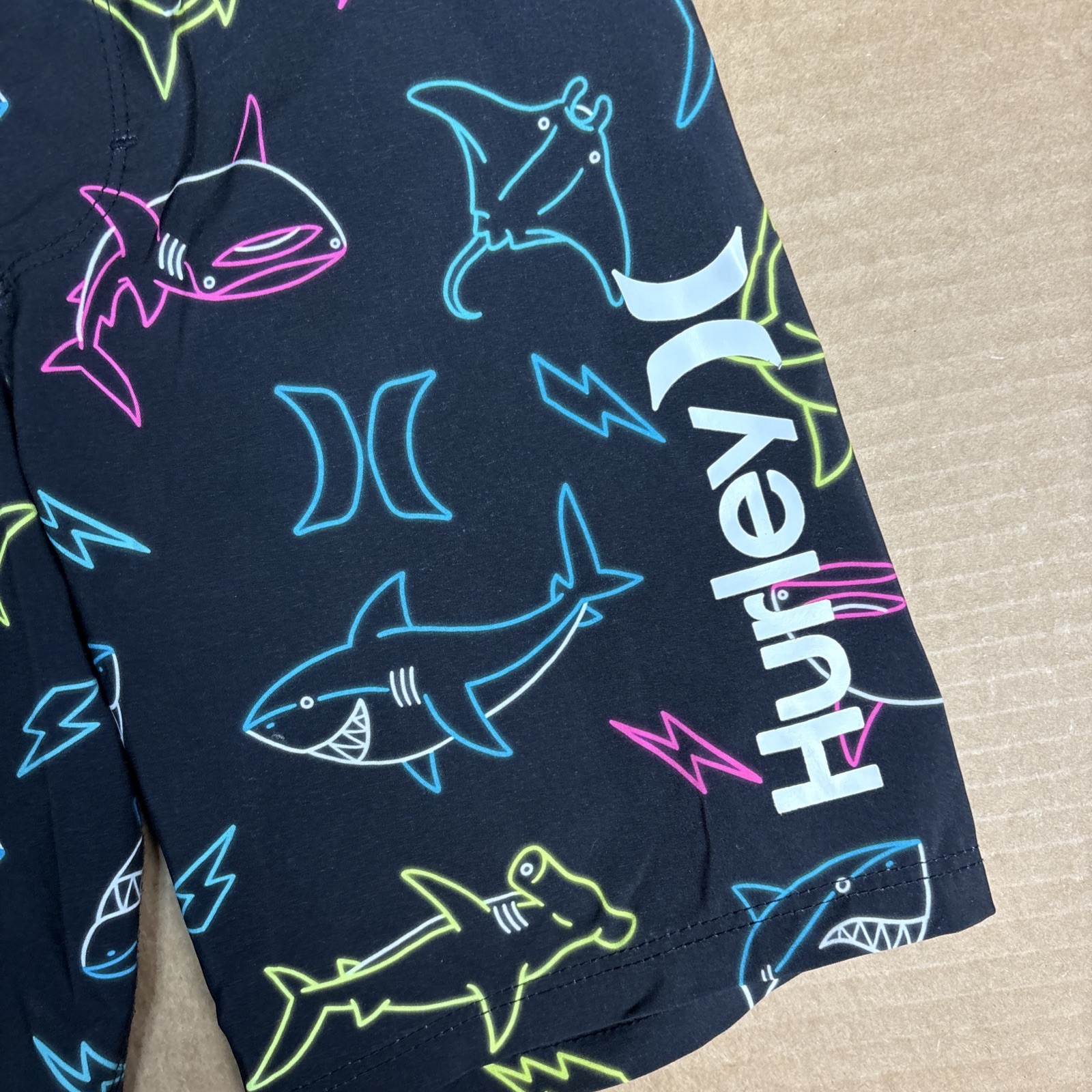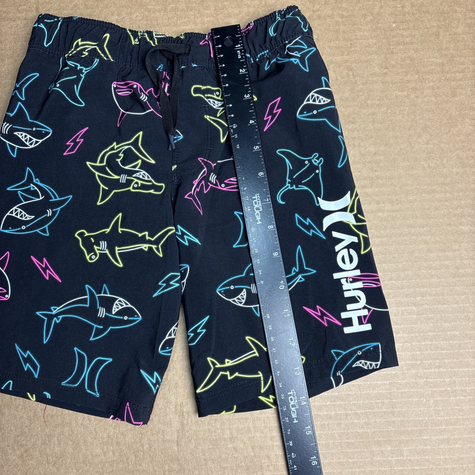 Hurley Boys 5 6 Swim Trunks Black Neon Sharks Built In Brief Mesh Board Shorts